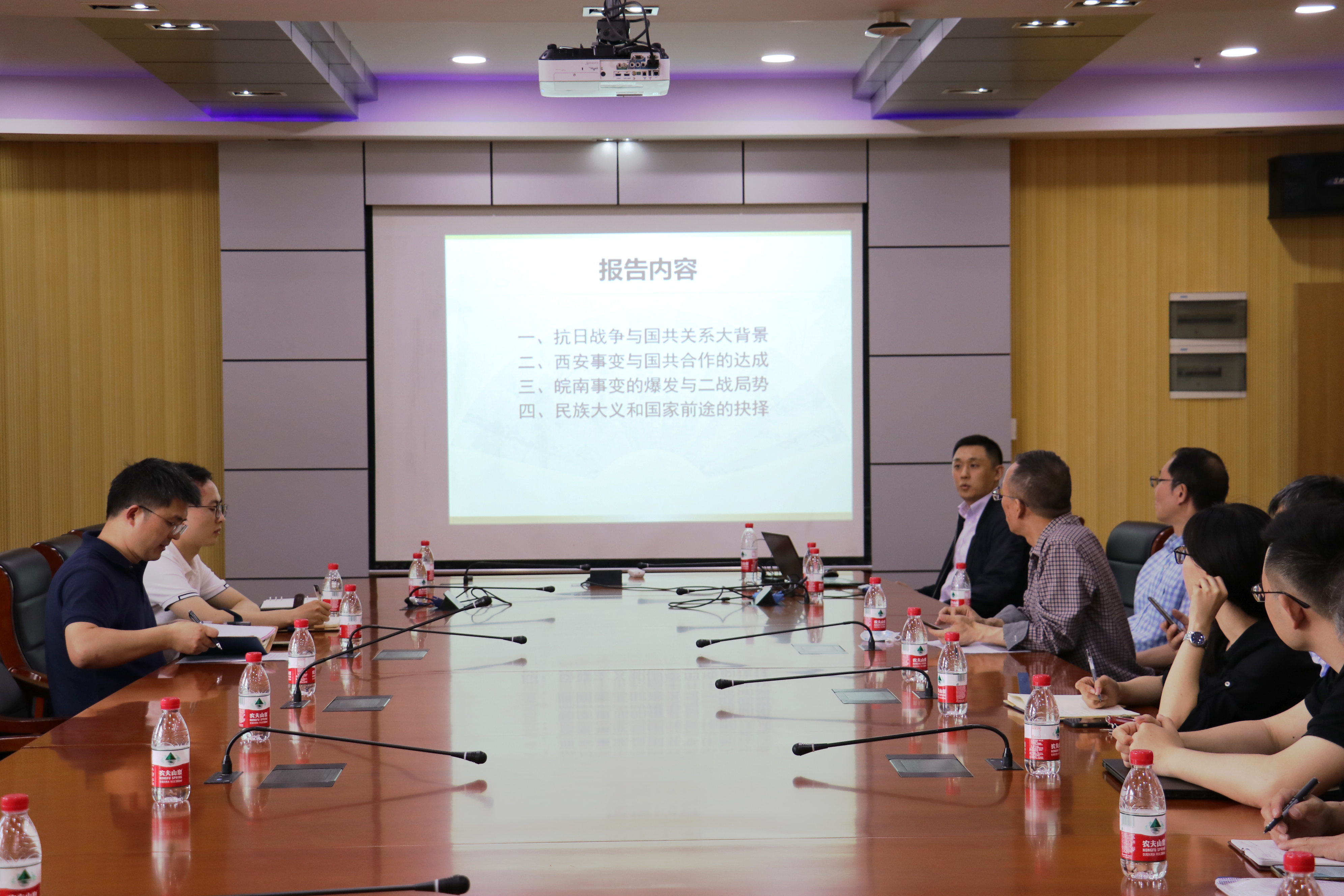 为深入推进党史学习教育,结合《澳门十大信誉好的网站教职工理论学习制度实施办法》《船建学院党史学习教育活动方案》等有关要求, 2021年5月31日,土木系综合党支部、结构工程党支部、岩土工程党支部在木兰楼A1002会议室联合举办了党史学习教育专题党课活动。活动邀请人文学院历史系贾钦涵副研究员做了以“从西安事变到皖南事变——抗日战争时期国共关系的两次转折”为主题的讲座。船建学院党委副书记王喜芳、学院党委委员、上海市公共建筑和基础设施数字化运维重点实验室主任赵金城、土木工程系系主任陈锦剑,以及土木工程系教工各党支部书记、党员共30余人参加了本次讲座。讲座由船建学院副院长、土木工程系综合党支部书记杨健主持。