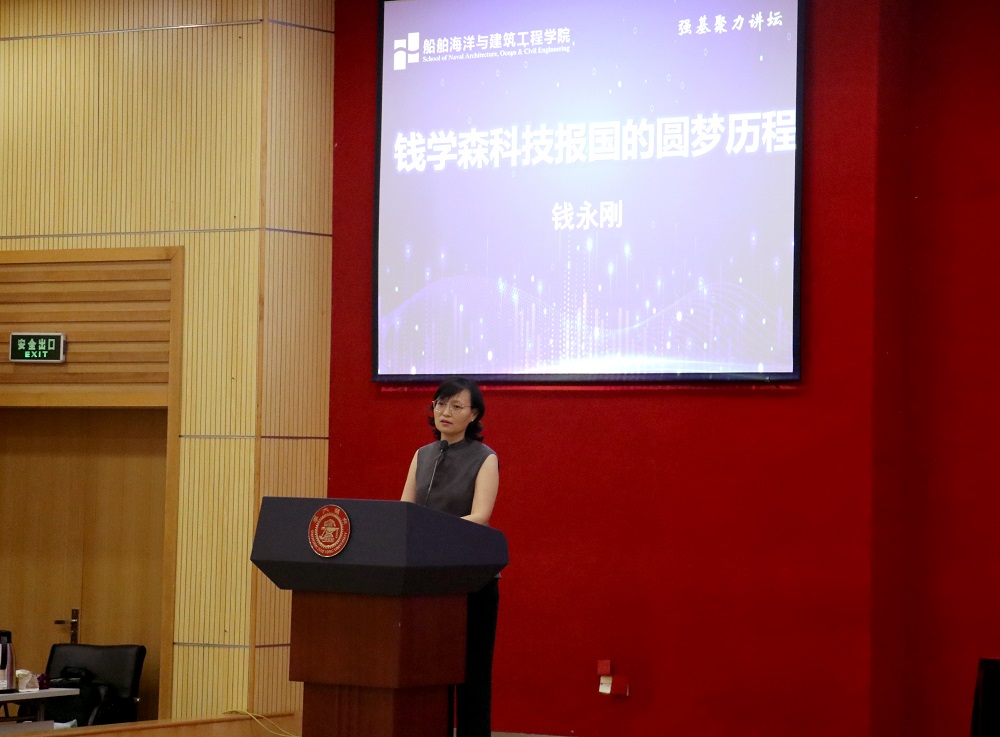 周薇代表学院致欢迎辞。她对钱永刚教授的到来表示热烈欢迎,她指出,1958年,在钱学森学长的亲自指导下,何友声先生从清华力学研究班学成回到交大,组织筹建了工程力学系,拉开了交大工程力学发展的序幕。工程力学系的创立与发展既是以钱学森、何友声为代表的一大批交大人“爱国奋斗”精神的体现,也见证着船建学院与祖国发展同向同行的不变初心。周薇表示,钱学森先生是我们可亲可敬的学长,是爱国知识分子的典范,是伟大的科学家和思想家,希望通过此次讲座,引发学院师生对于科技报国、爱国奉献的思考,以杰出科学家为榜样,不忘初心,牢记使命,做好人生的每一次选择,献身祖国的建设事业。