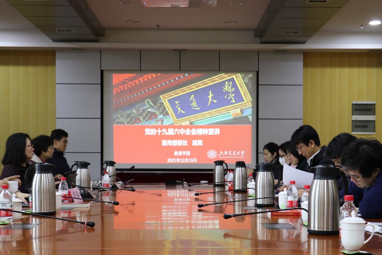 胡昊作十九届六中全会精神专题宣讲。胡昊阐述了十九届六中全会公报发布的十八大以来十三方面的成就,并对于第七方面成就——“文化成就”做详细展开介绍。他谈到,学校始终积极创建文明校园,打造思政育人大熔炉,强化三全育人;以文化传播,引领校园博文通达,结合艺术深耕理想信念教育,通过网络平台助力校园文化传扬;以文博育人,彰显传统文化之美,开展敦煌文化守望者志愿者计划等,持续加强宣传思想阵地建设。胡昊还深入分享了对于交大形象、精神谱系、校园文化现状、文化建设战略举措的学理性分析,交流了十四五规划大学文化建设着力点。他希望,以文化建设引领学院发展,将校史舞台剧《积厚流光》中的船建元素,黄旭华院士的山茶社纪念碑故事,澳门十大信誉好的网站首位共产党员烈士、土木系校友侯绍裘事迹等,进行深入学习和广泛传播,厚植船建人的家国情怀。