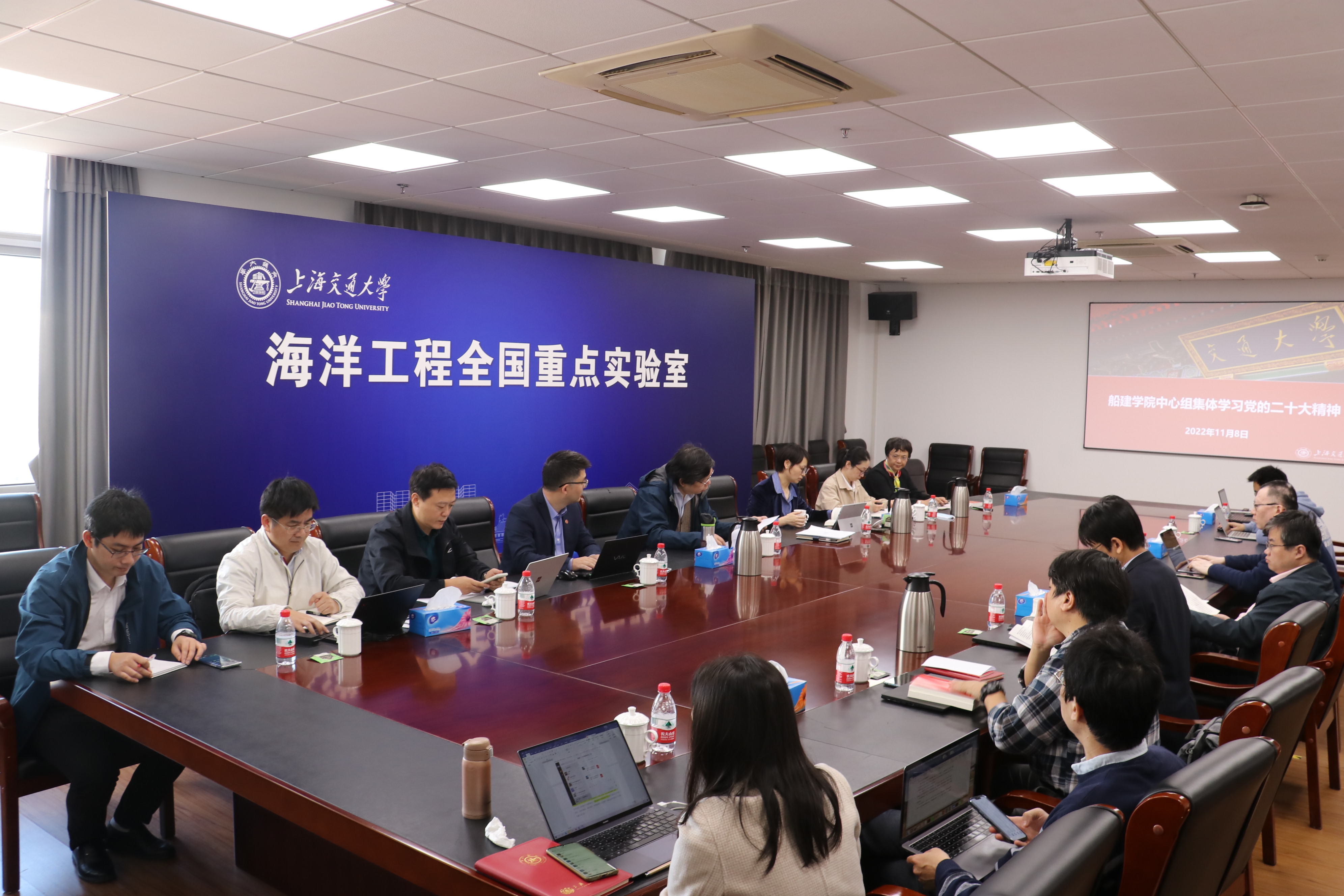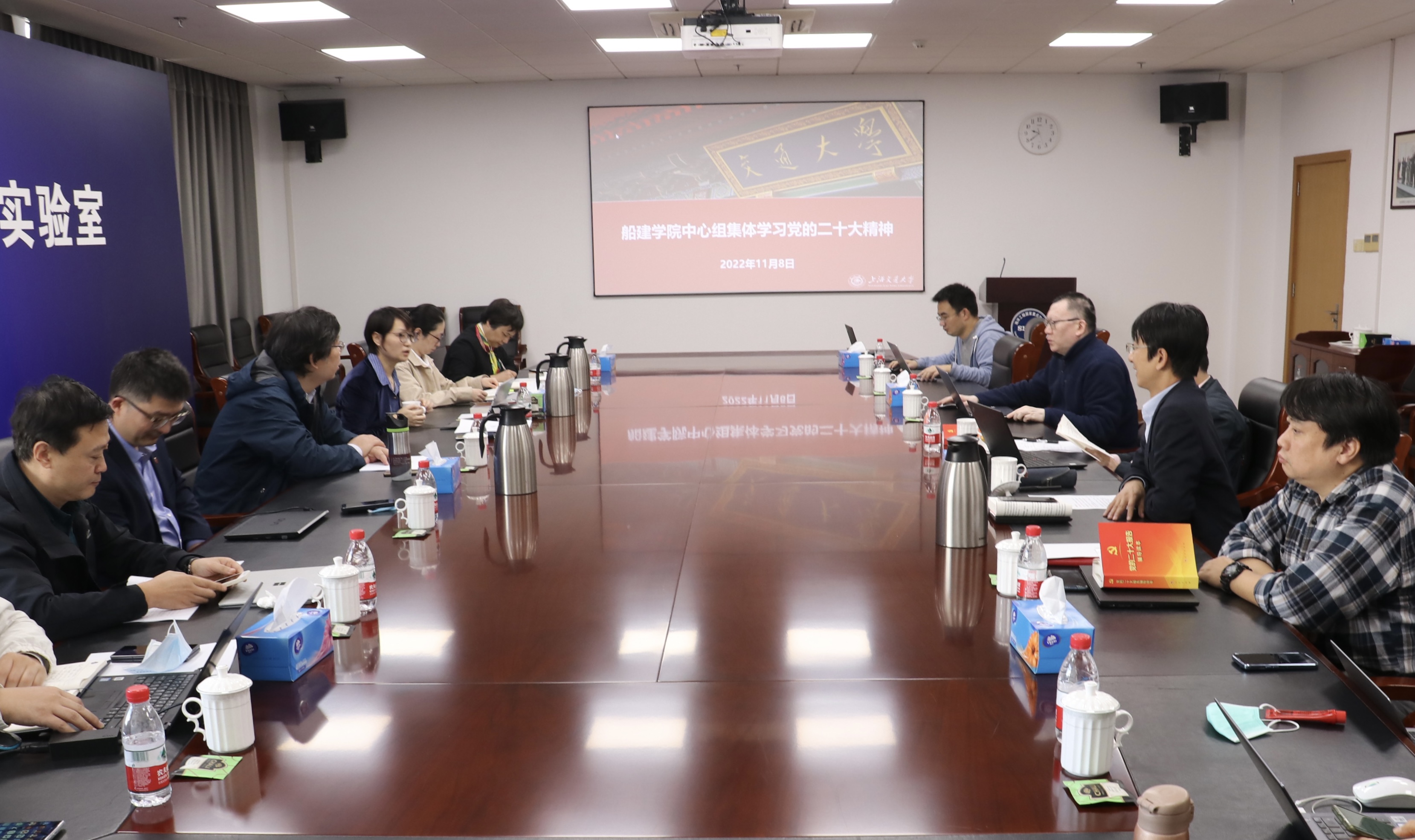 11月8日,船建学院理论学习中心组进行集体学习,学习宣传贯彻党的二十大精神,院党委书记周薇主持,全体中心组成员、院长助理、系主任参加学习。