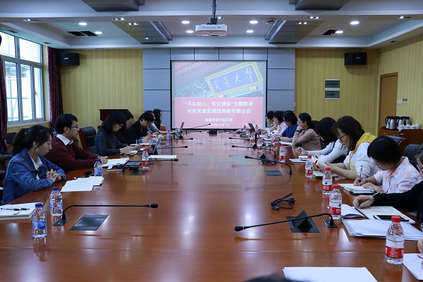 2019年11月2日中午 ,按照“不忘初心、牢记使命”主题教育的相关部署,船建学院行政党支部在木兰楼A1002会议室开展了对照党章党规找差距专题会议。院党委书记周薇,副书记王喜芳、宋续明,行政组室全体教工参加会议。会议由支部书记袁敏主持。
