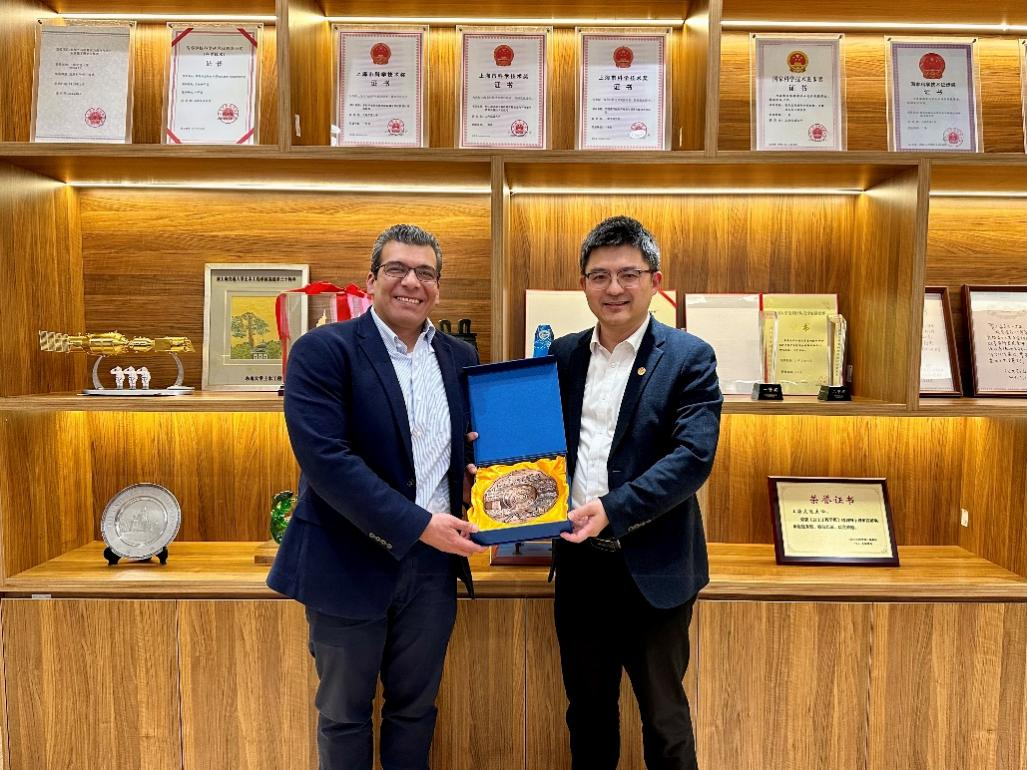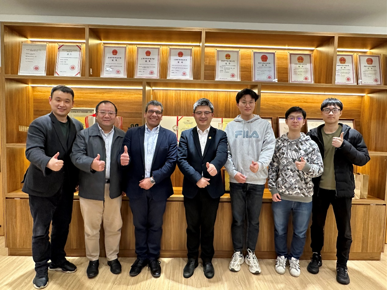 Kamal Niazy部长对上海交大团队在玻璃中间膜领域的工作进行了高度赞赏,认为对结构玻璃的开发和设计具有指导性和提供了安全依据。双方还就产品的可持续性、价值提升以及人工智能技术在行业发展中的应用等问题进行了深入探讨。双方表示会持续分享知识与经验,深化产学研合作,推动夹胶玻璃技术进步与应用拓展,并对未来更广阔的合作前景充满期待。