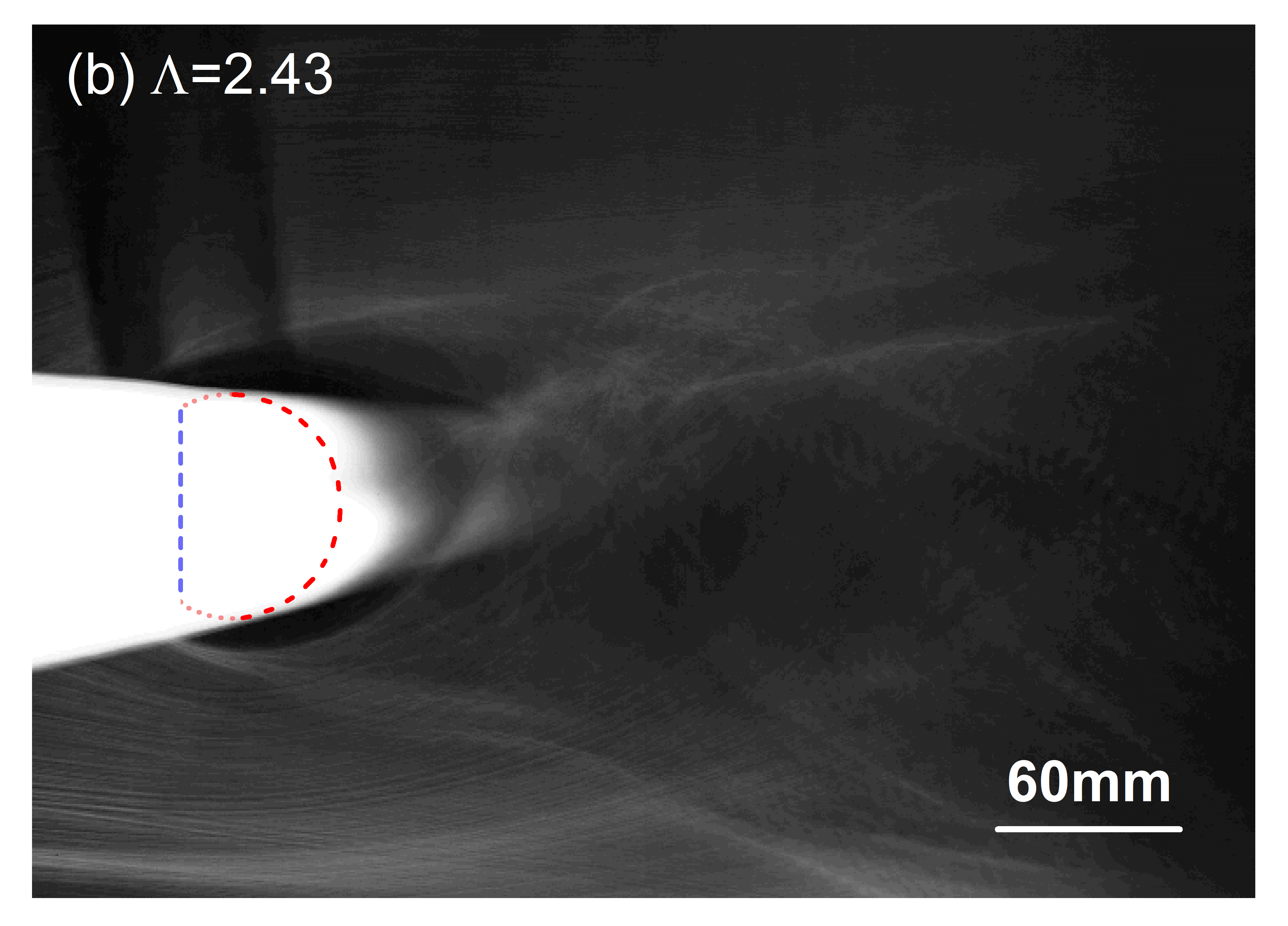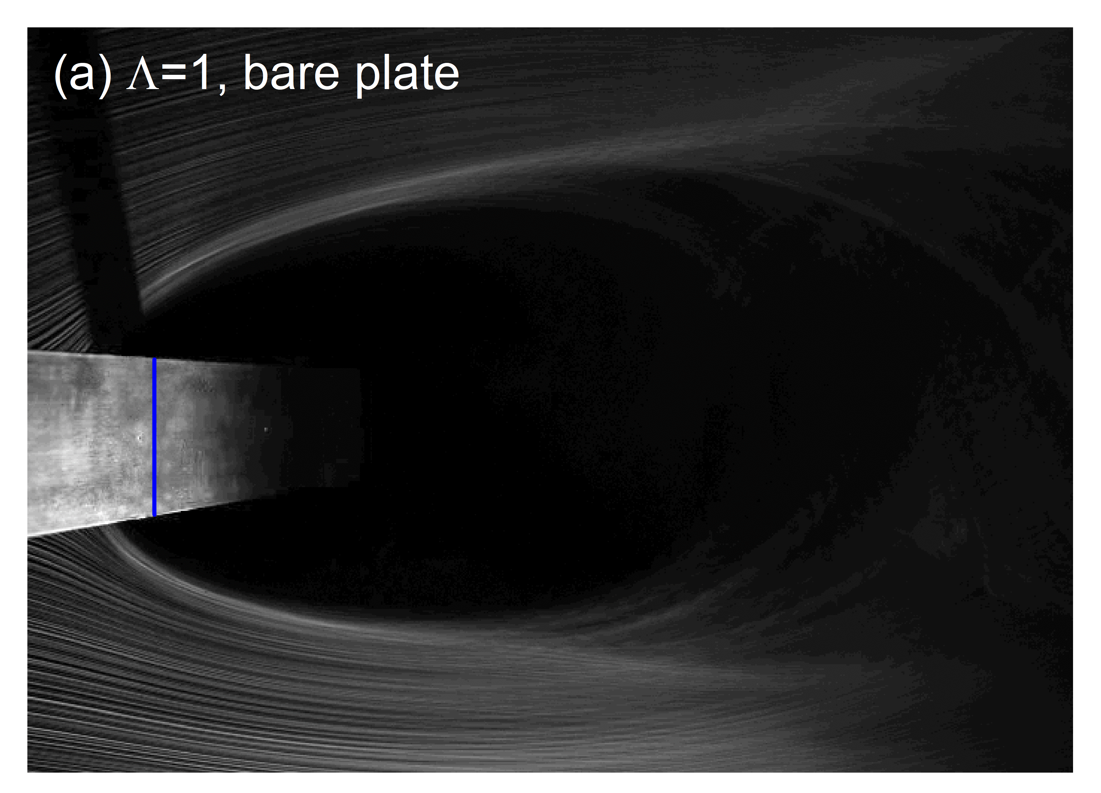 图3.平均尾流烟线图:(a)仅平板;(b)薄膜包裹的平板