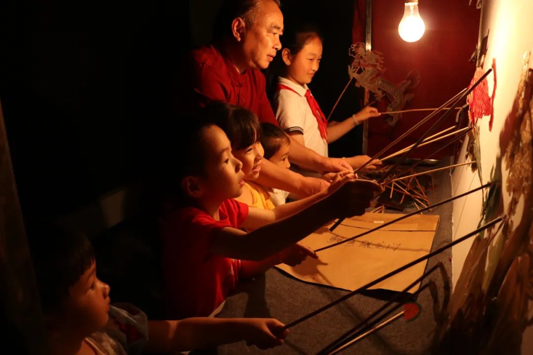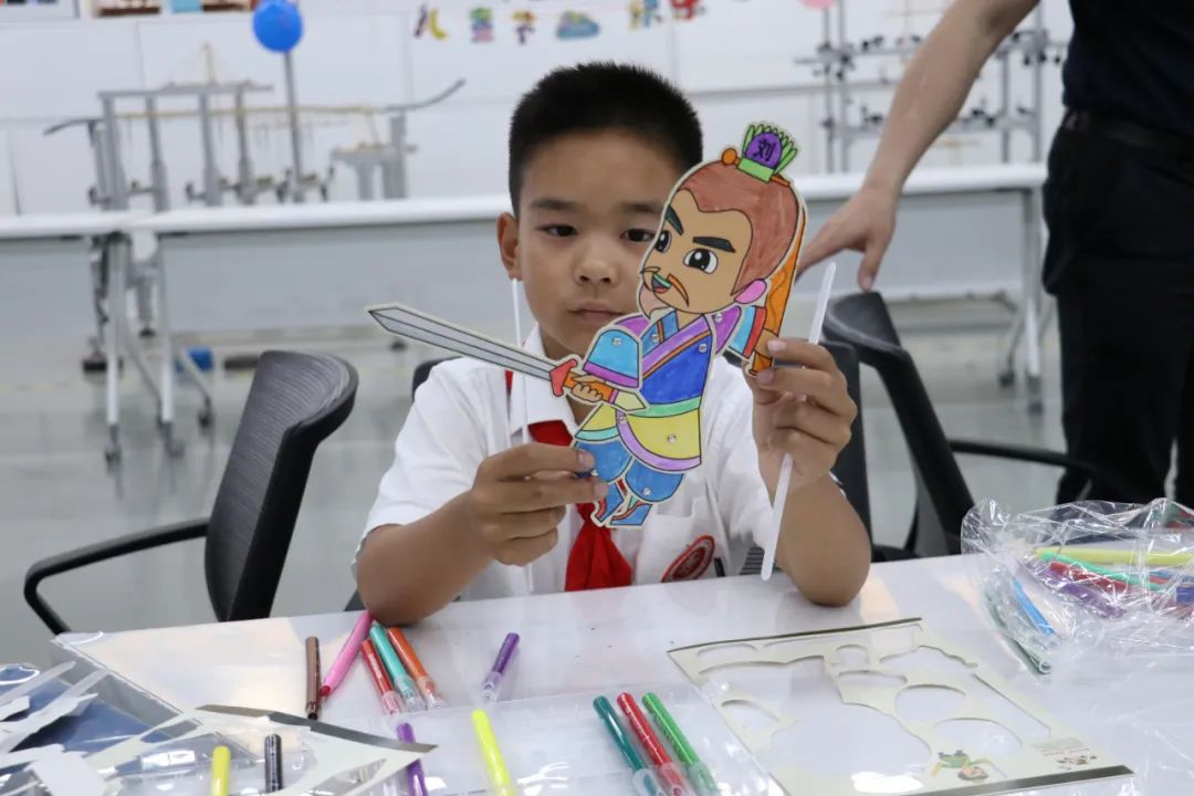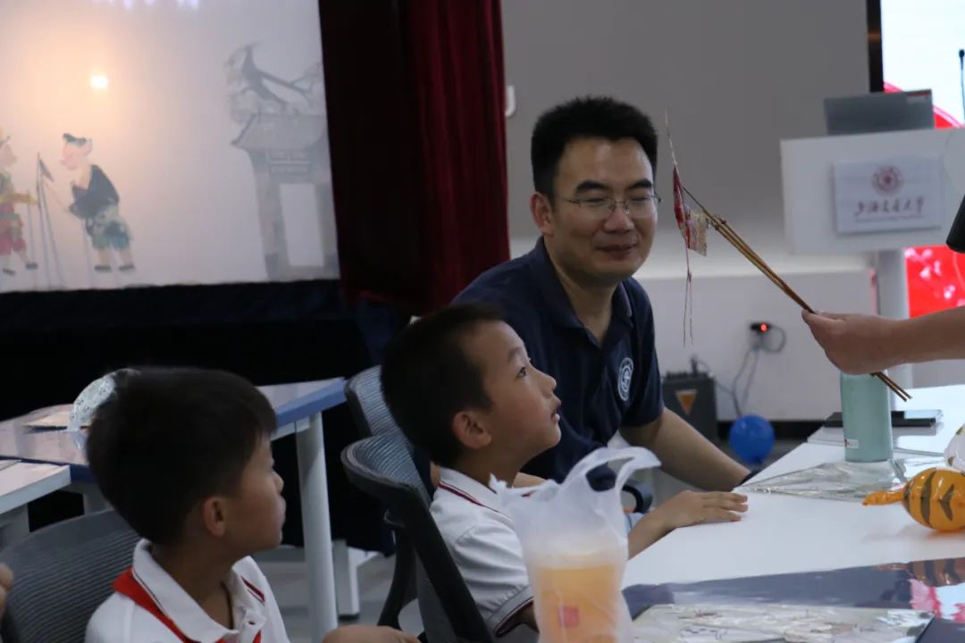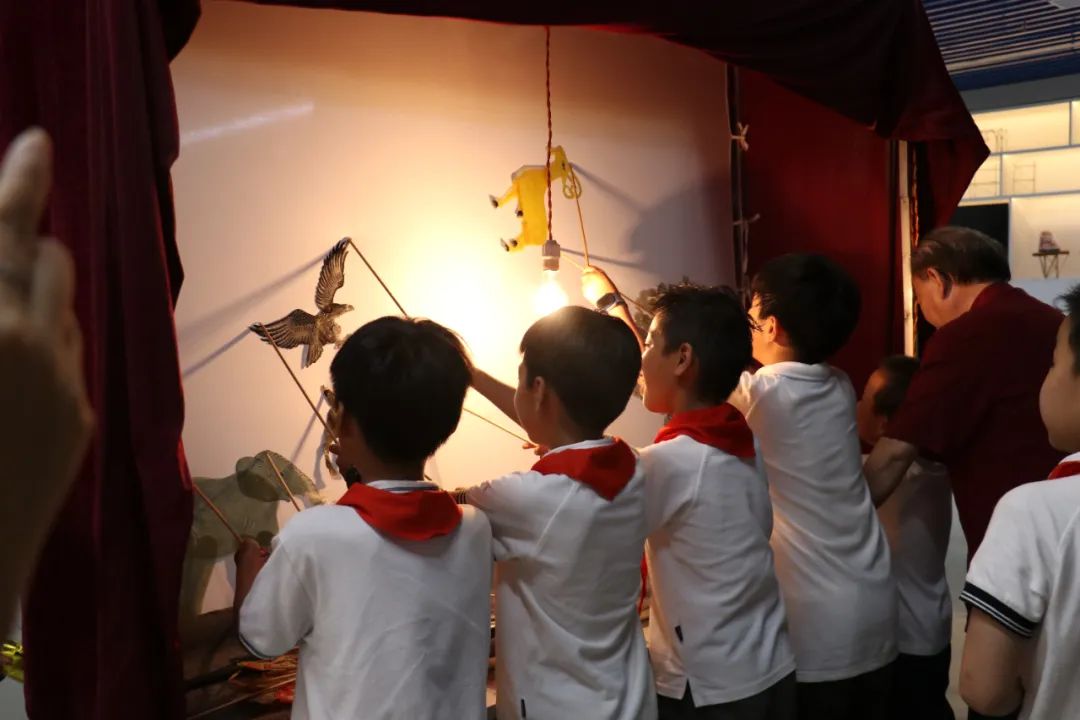 观看皮影戏后,小朋友们化身 “皮影小匠人”,亲手制作手皮影偶。孩子们纷纷走到幕后认真演绎着皮影首秀,切身体验了皮影戏表演的乐趣,距离感受中国传统文化的美丽。