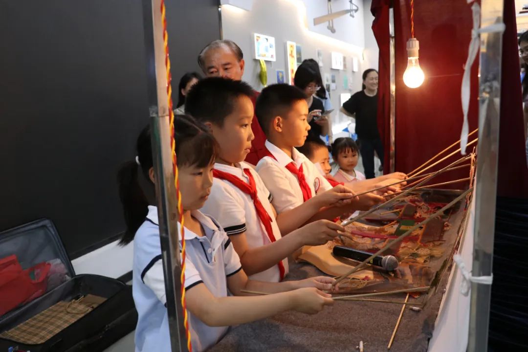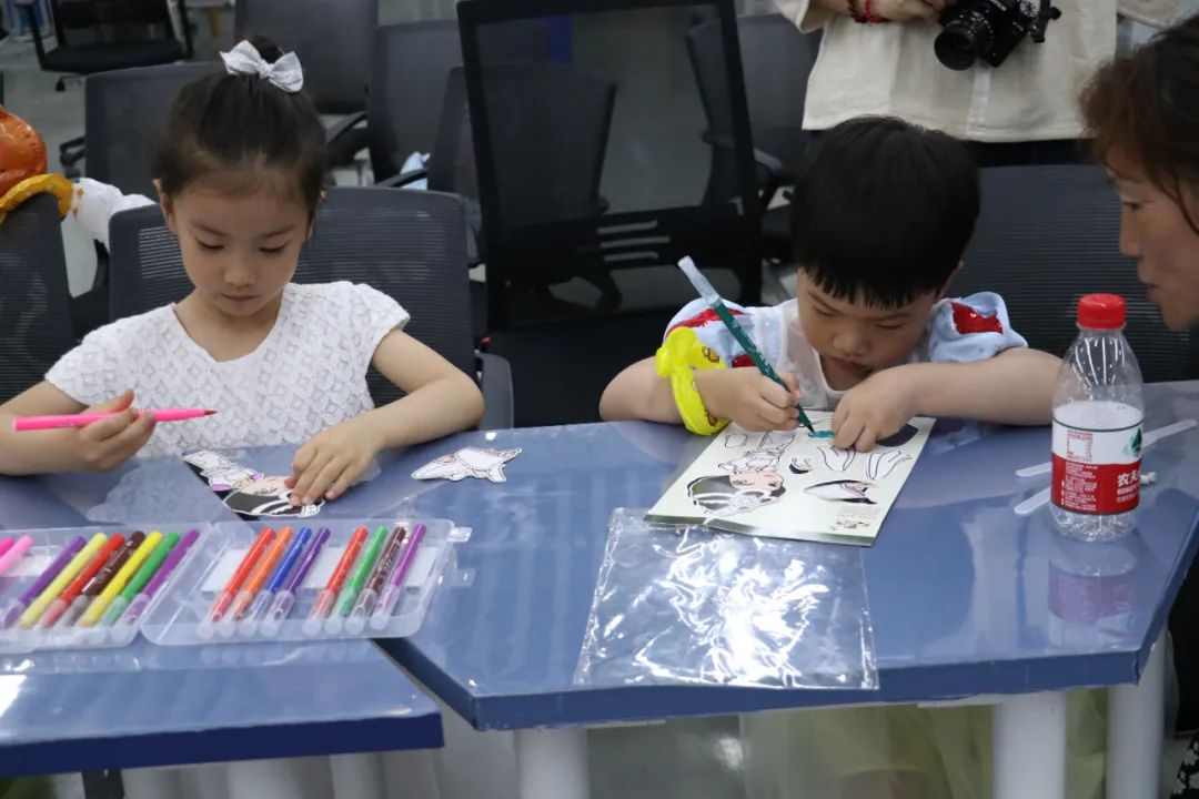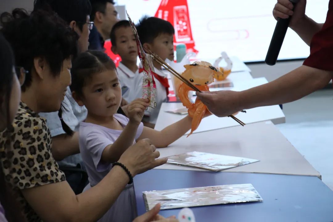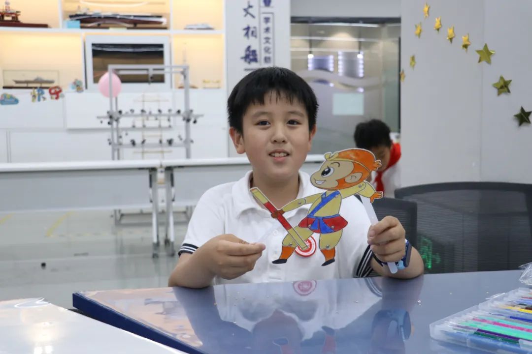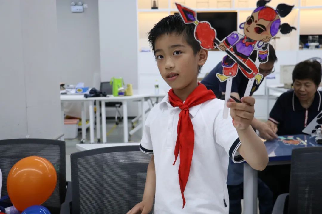 观看皮影戏后,小朋友们化身 “皮影小匠人”,亲手制作手皮影偶。孩子们纷纷走到幕后认真演绎着皮影首秀,切身体验了皮影戏表演的乐趣,距离感受中国传统文化的美丽。