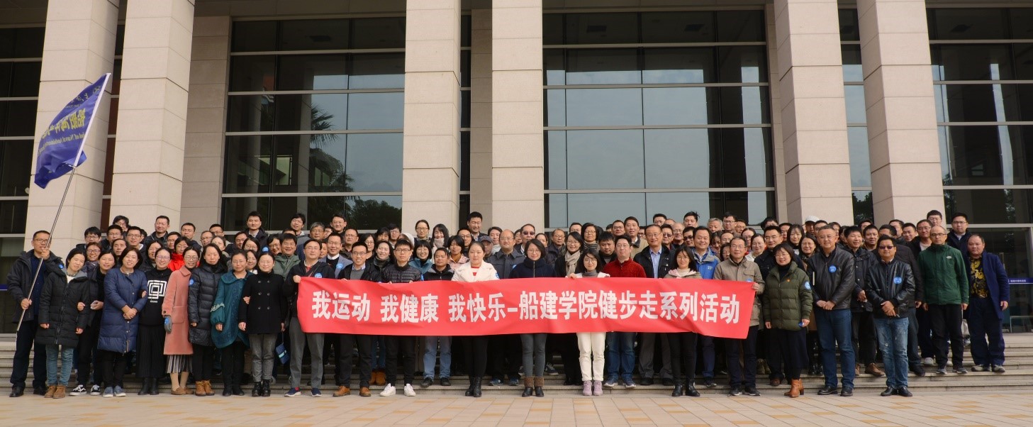 2019-12-09 为倡导全民健身的生活理念,并庆祝船建学院外墙竣工,12月4日中午船建学院教职工在校园内举行我运动 我健康 我快乐冬季健步走活动。