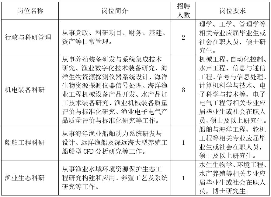 联系方式:上海市赤峰路63号8号楼2107室(200092)中国水产科学研究院渔业机械仪器研究所人事处