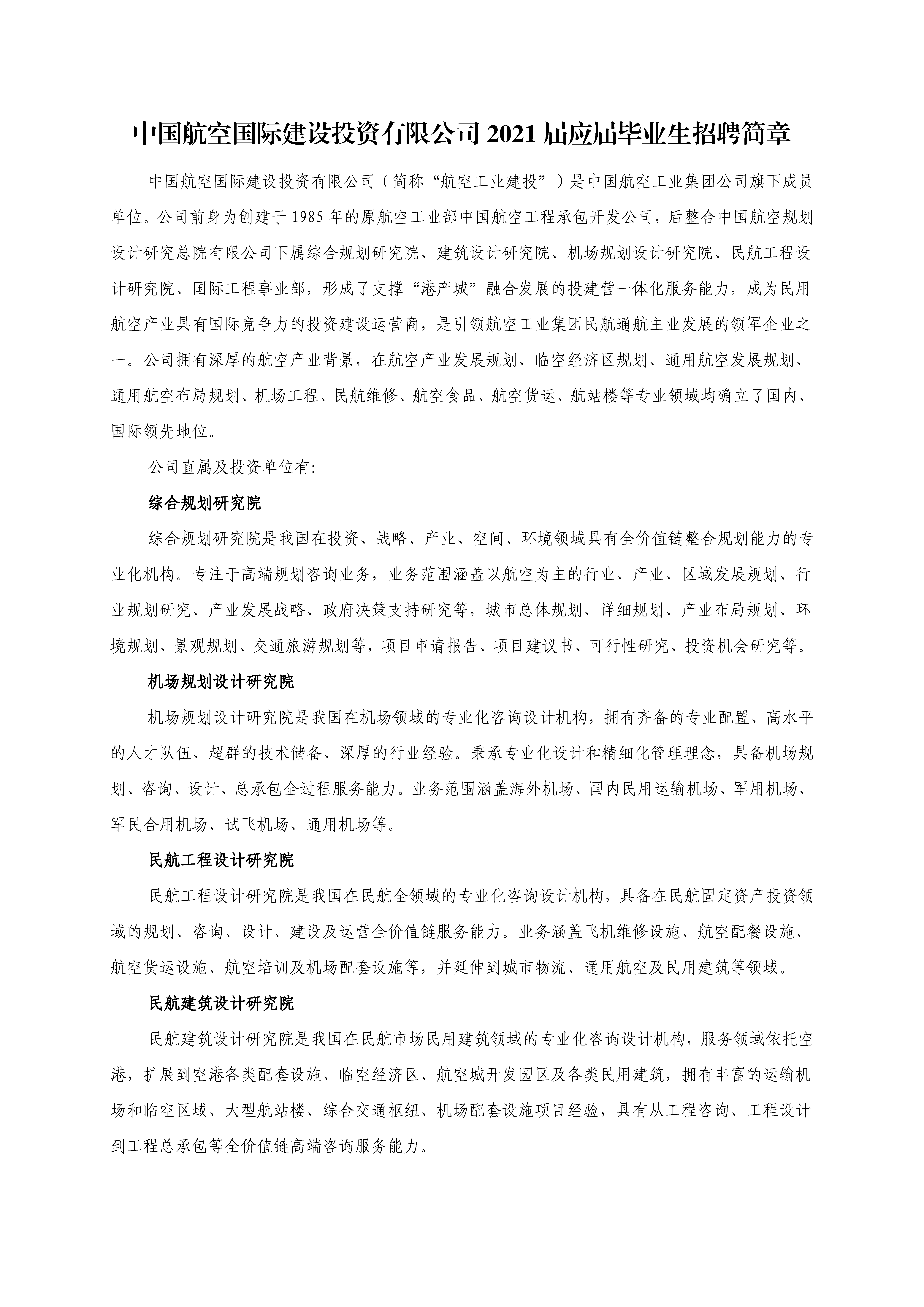 【招聘】中国航空国际建设投资有限公司