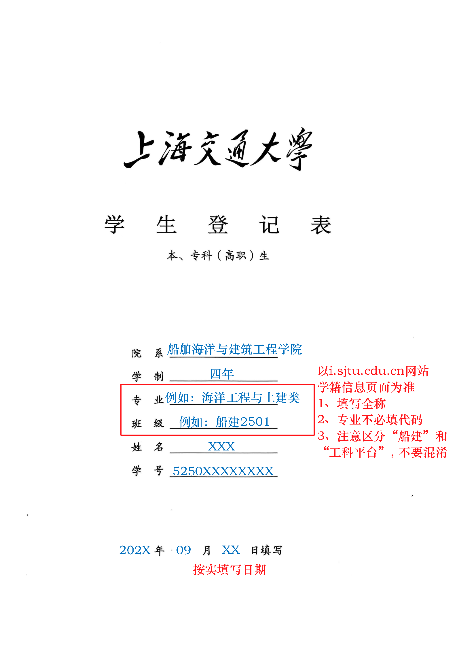 《澳门十大信誉好的网站学生登记表》(本科生入学登记表)填表说明