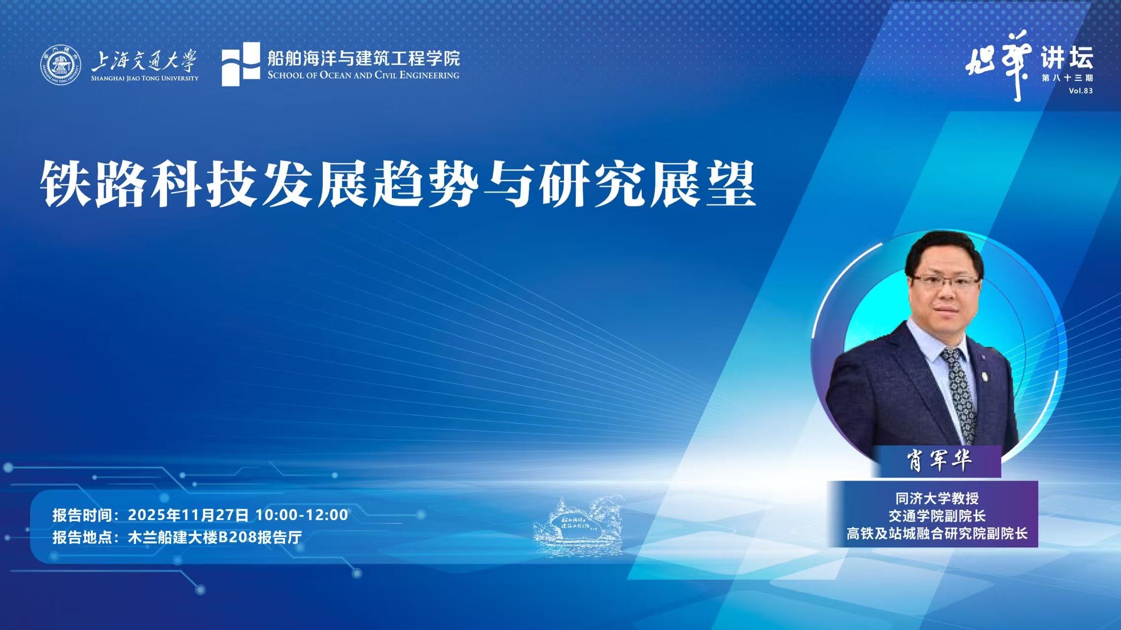 肖军华,同济大学教授、博士生导师,交通学院副院长、高铁及站城融合研究院副院长,同济大学-德国弗劳恩霍夫协会智慧感知创新平台主任。分别入选国家高层次领军人才计划、青年人才计划,交通运输部中青年科技创新领军人才。兼任中国工程建设标准化协会轨道交通专委会副主任、中国岩石力学与工程学会路基工程专委会副主任、全国交通岩土工程学术委员会副主任、上海市土木工程学会铁道工程专委会副主任、《铁道学报》《城市轨道交通研究》等期刊编委。