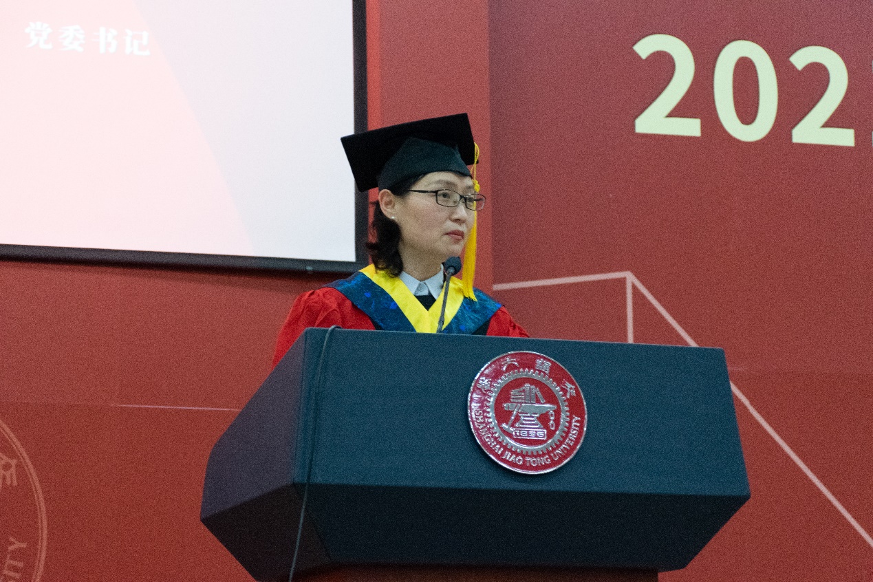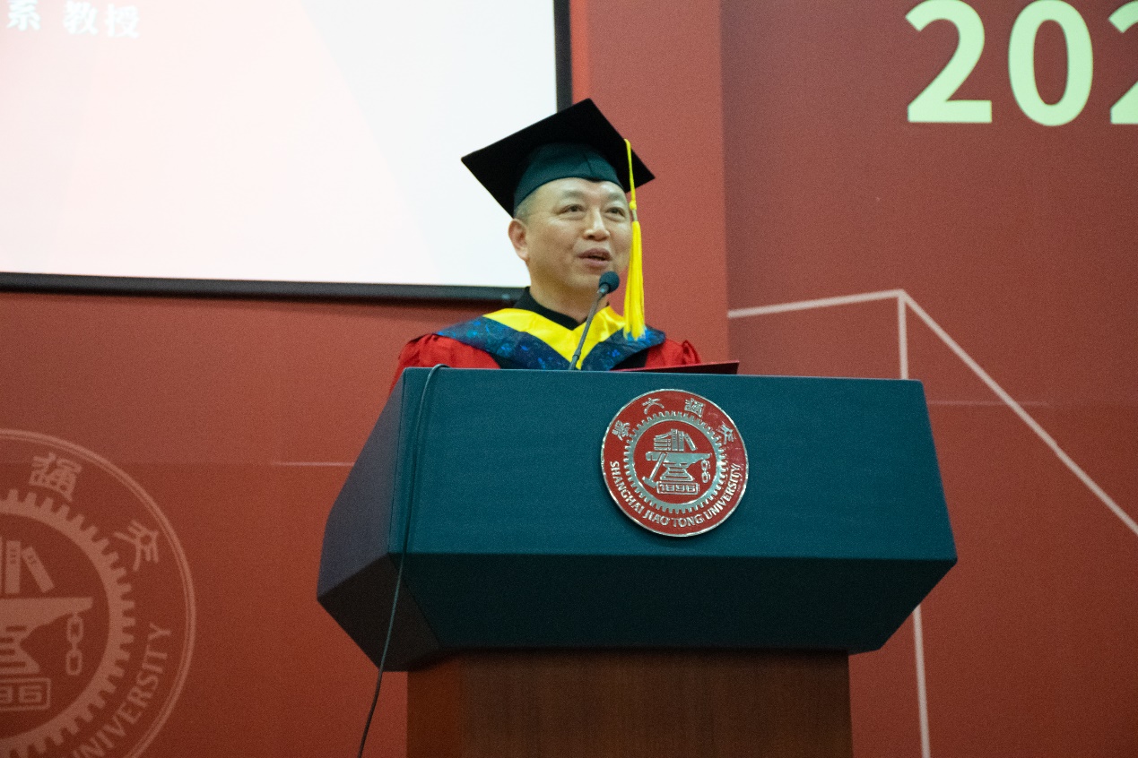土木工程系教授周岱作为导师代表发言。周教授从“上、海、交、通、大、学”六字与同学们一起探讨应当“做什么样的人、做什么样的事”。他希望同学们在走出校园后,依旧能成为所在群体中的精英,明辨是非、主张正义、心系家国;做有良知、责任和担当的人;做新时代的栋梁,成为国家、社会、行业的领跑者。