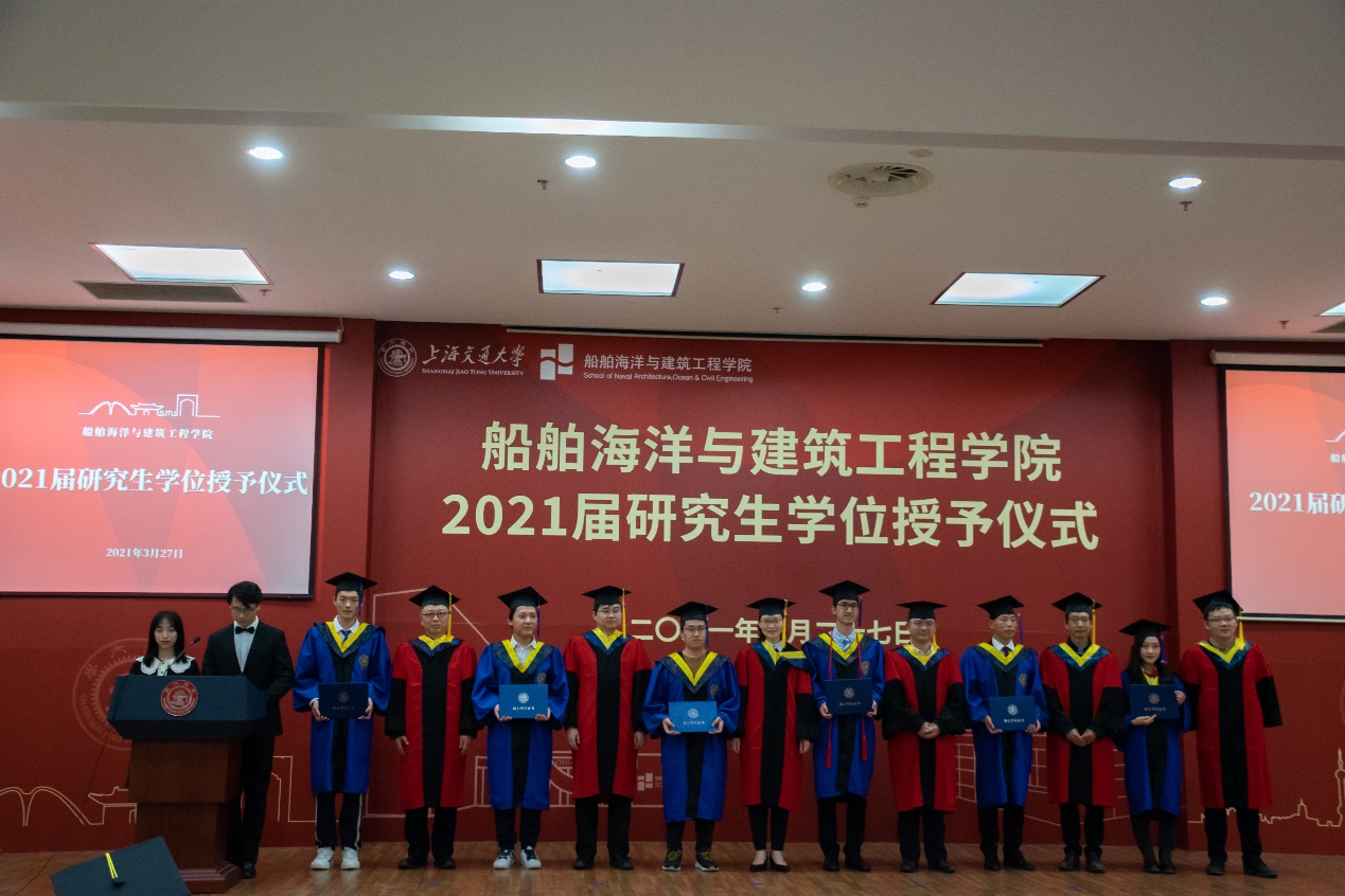 3月27日下午,澳门十大信誉好的网站2021届研究生毕业典礼暨学位授予仪式在木兰船建大楼A200报告厅举行。