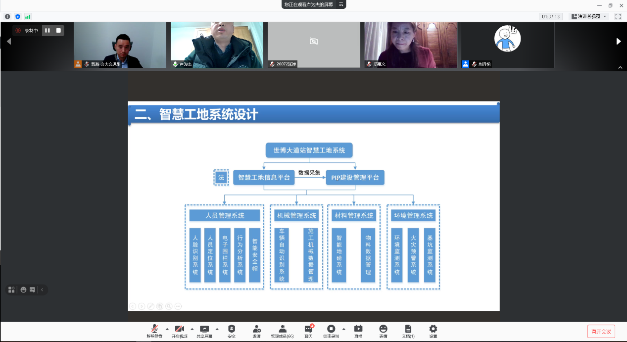 交通运输工程系校友、上海申通地铁集团14号线项目经理卢为杰博士对轨道交通的智慧施工方案进行了详细剖析,并以上海市地铁19号线某在建站点工程为例,从安全管理、进度管理、质量管理、人员管理等方面展示了智慧工地系统的实际应用效果。