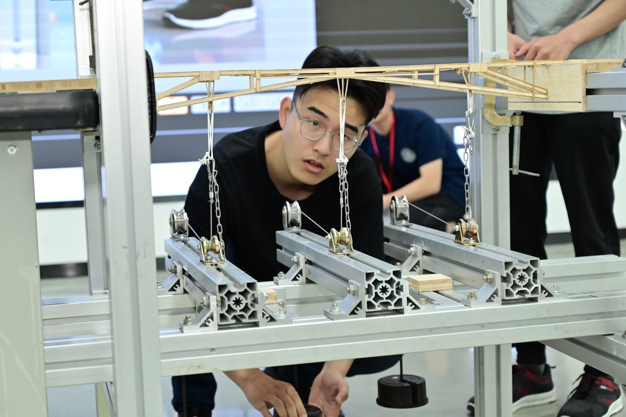 在全部加载结束后,本次比赛的特邀嘉宾陈望也上台加载了他制作的结构模型。赛后,他表示,结构赛是一个优秀的平台,不仅锻炼了同学们的专业能力,还为同学们提供了良好的交流平台。