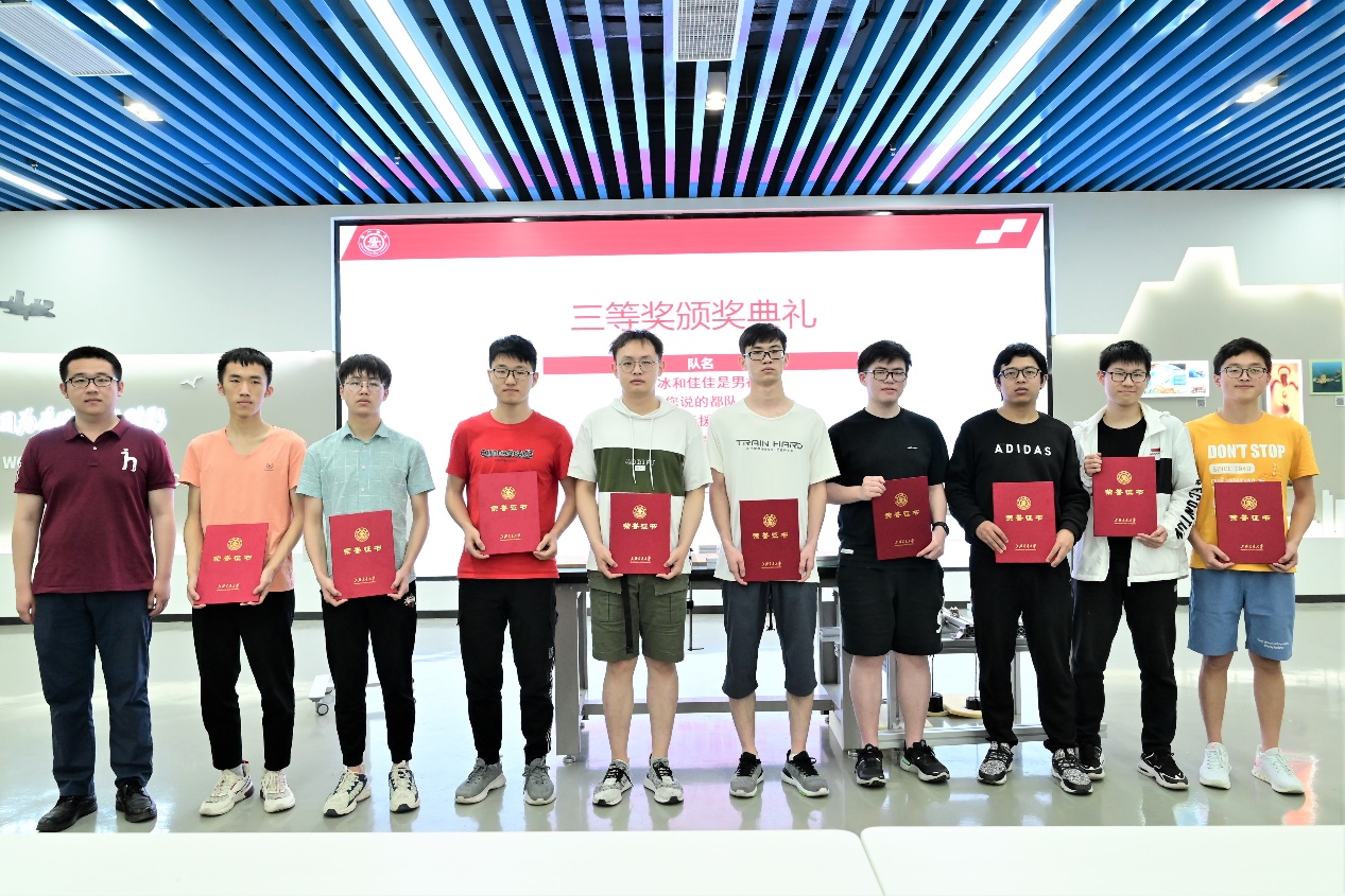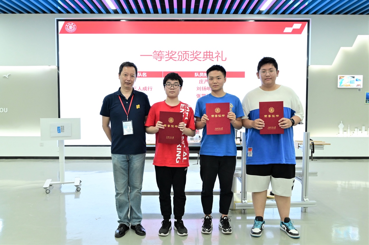 经过两个小时的加载过程,由庄严、刘扬明、张凯淇组成的“三人成行”队获得了本次比赛的一等奖;“飞虎队”、“哎!就是玩儿!”以及“凌晨两点模型队”三只队伍获得二等奖;还有七只队伍获得了三等奖。此外,“你说的都队”与“一点点”两只队伍获得最佳设计奖,“卡拉瓦桥”与“提桶跑路队”,两只队伍获得最佳制作奖,“卷心菜v2.0”获得最佳造型奖,“煎熬与偏慢模型小队”获得成功爬坡奖。