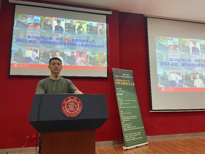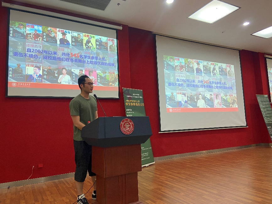 参军退伍学生代表朱甬麒、殷豪、黄庆喜分别和同学们分享了自己的参军感悟。他们从自己的实际情况出发,讲述了自己参军入伍的初衷,在军营中的体验与收获,以及自己目前的学习生活状态,为想要参军入伍的同学提供了建议和参考。