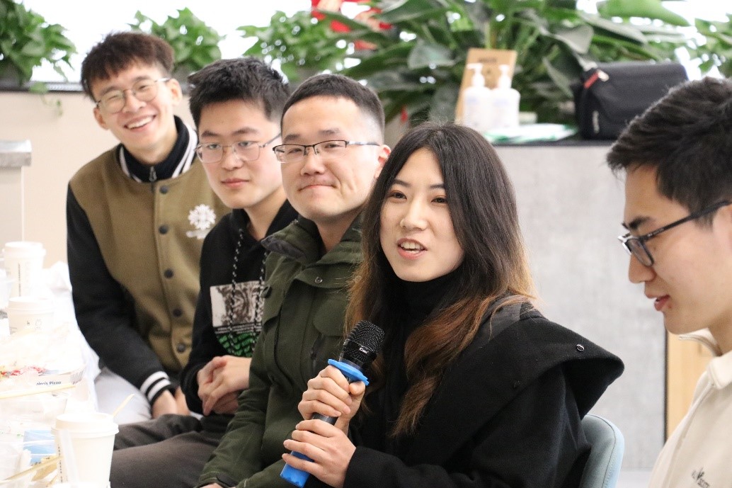 而后,学院思政教师张奕民带领大家开启UTJS互动环节。从现场编“虎”故事的新年“抓手指”游戏,到“语音出游”的虚拟化“三园游戏”,再到“阿拉伯数字”出场的“小7手游”,现场师生们在有趣的游戏过程中增进了感情。“多吃饺子”、“学在交大”、“新年绕口令”、“船建人祝福语录”等,也成为交流环节的活泼互动形式,全场洋溢着独特的年味儿和满满的欢乐。