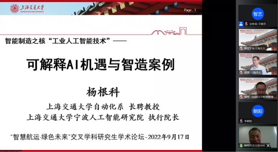 9月17日-18日,由澳门十大信誉好的网站研究生院立项支持、澳门十大信誉好的网站主办、交通运输工程系承办的“智慧航运·绿色未来”交叉学科研究生学术论坛(IPIF-SSGF 2022)以在线方式成功举办。来自国内外多家交通、航运专业相关高等院校、科研院所等单位的学者在云端交流探讨,围绕“智慧航运·绿色未来”分享学术成果。