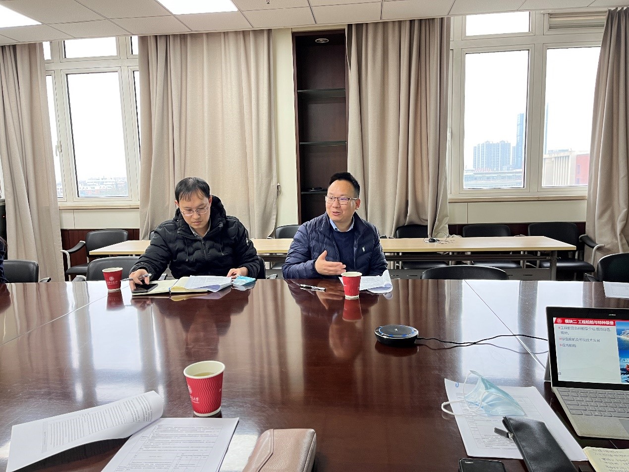 徐振礼介绍课程建设背景,本门通识教育主题课程,以“海洋”为主题,旨在从人文、社科、自然、工程全方位多学科视角切入,从价值引领、知识、能力、素质等多维度培养学生多学科视野和跨学科能力,同时将学生的修读与国家战略、交大科研前沿紧密结合,激发学生投身大国重器的热情。船建学院作为课程牵头学院,要发挥学院特色和学科优势,协调兄弟学院作好课程建设,将《海洋》大通识课做出品牌,做出成效。
