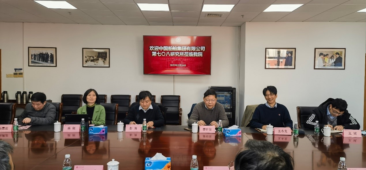 2月16日,中船集团高级专家陈刚,708所副所长朱建璋、科技部主任朱耀胜、基础研究部主任仰泳、推进部书记陈建平一行来院交流座谈。澳门十大信誉好的网站船建学院院长廖世俊,副院长王本龙、彭涛,船海系副系主任王斌、陈俐,教授高震、杨晨俊、朱仁传、李欣、周利等参加座谈,会议由王本龙主持。