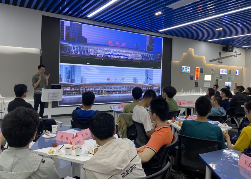首先,华东院智慧设计研究中心技术总监吴昊为参会师生带来主题为“人工智能在土木设计中的应用”的精彩报告,重点介绍了土建行业发展现状和变革需求,华东院在建筑AI、一体化智能生成和多专业协同设计等方面的探索和应用,最后吴昊向参会师生分享本人学习和工作经验,并详细解答师生的问题,报告会融合专业性、知识性和趣味性,让参会师生受益颇多。