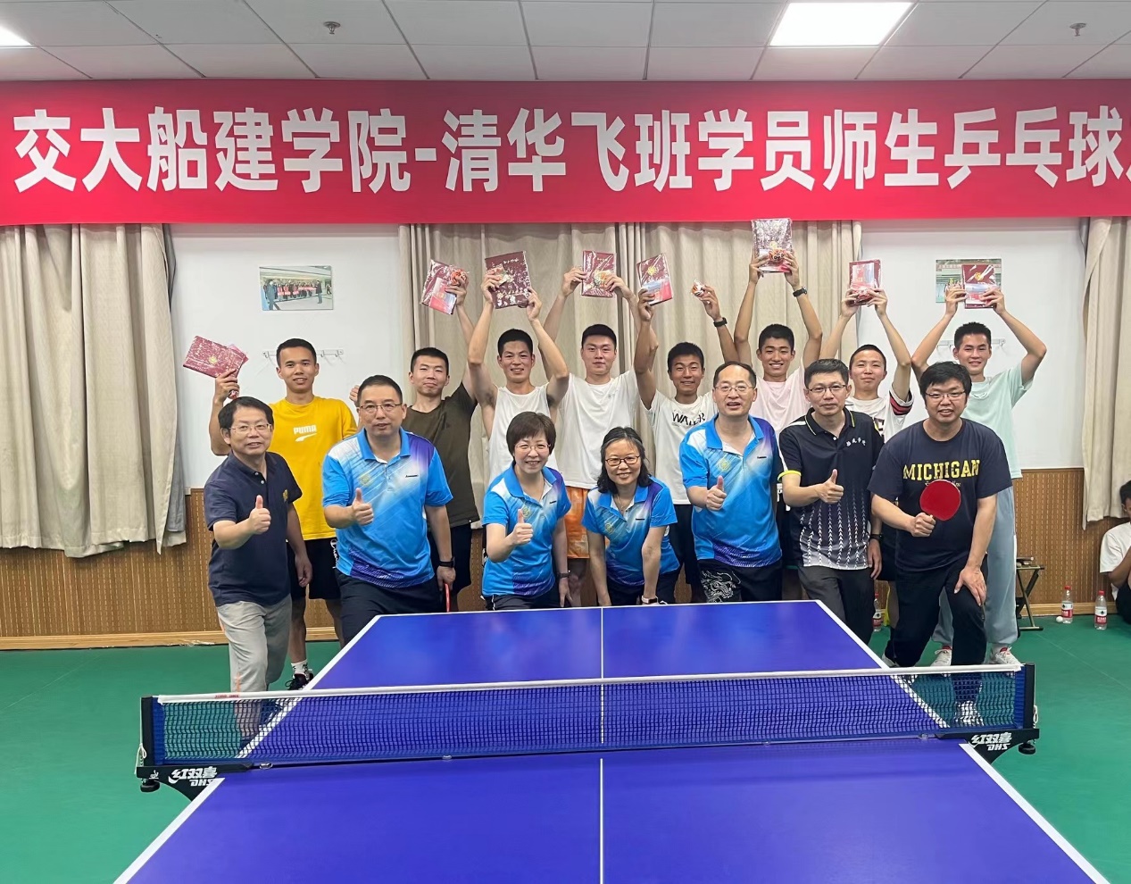运动点燃热情,促进师生交流。7月5日,交大船建学院-清华飞班联合培养学员师生乒乓球友谊赛在船建学院木兰楼的一楼教工之家举办。船建学院工会组织十余位教师和全体飞班学员开展了精彩激烈的乒乓球对决。学院工会主席刘铸永、副主席袁敏出席活动。