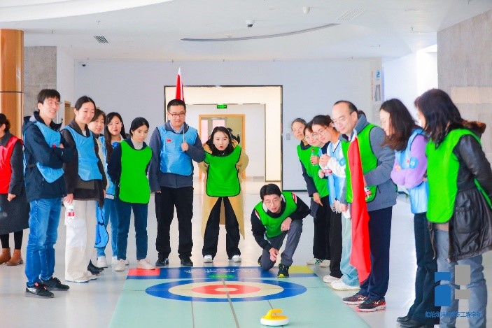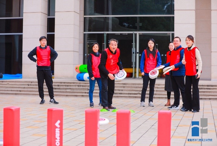 活动开始前,大家进行组队,起队名、喊口号。本次运动会共有“陆地冰壶”、“车轮滚滚”,“众星捧月”、“巧扔飞碟”等比赛项目。每个项目都充分调动了教职工们的肢体协调能力、团队合作能力、战术分配能力,使得每一场比赛的角逐都尤为激烈。