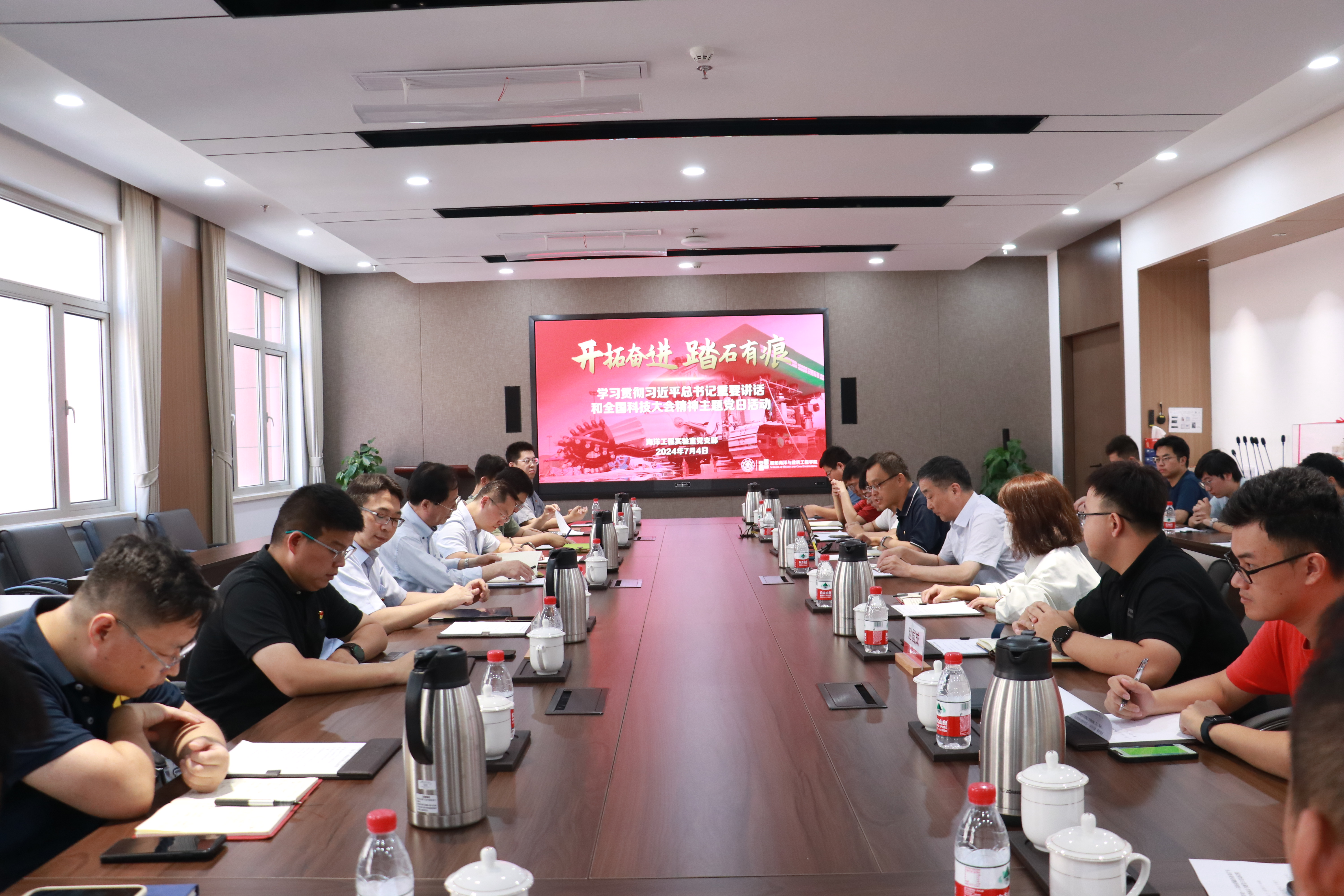 吕海宁带领党员学习习近平总书记重要讲话和全国科技大会精神。会上要求,师生党员要以习近平总书记重要讲话精神为指引,锚定2035年建成科技强国战略目标,瞄准前沿热点和国家战略需求,以时不我待的劲头,勇做新时代科技创新的生力军,为加快实现高水平科技自立自强和加快推进学校“大海洋”战略建设贡献力量。