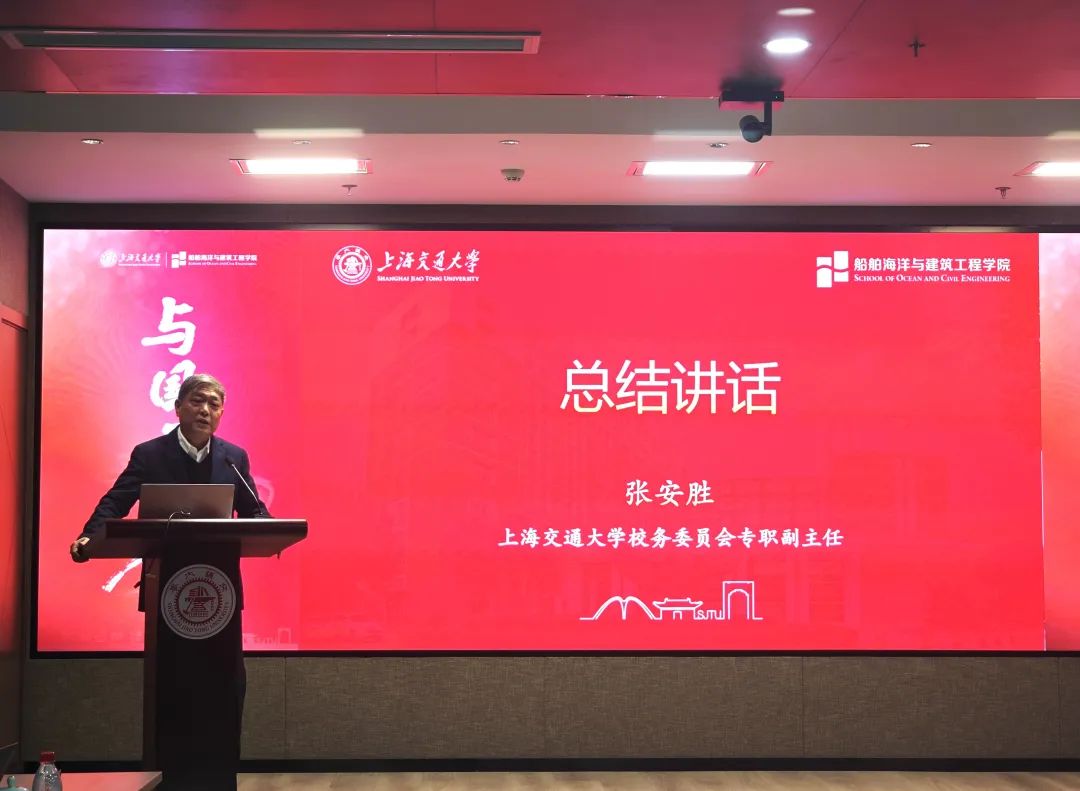 张安胜代表学校作总结发言。他表示,“黄金枝土木建筑奖学金、奖研金”的评选机制日趋成熟,覆盖群体广泛,至今已资助300余名交大师生,为土木、建筑学科人才培养注入了强大动力。他勉励广大师生再接再厉、勇于创新,以更优异的成绩回报社会,以博大胸怀和无私奉献精神造福更多后来人,期待黄金枝教授洒下的种子发芽成长,未来能够结出丰硕的果实。