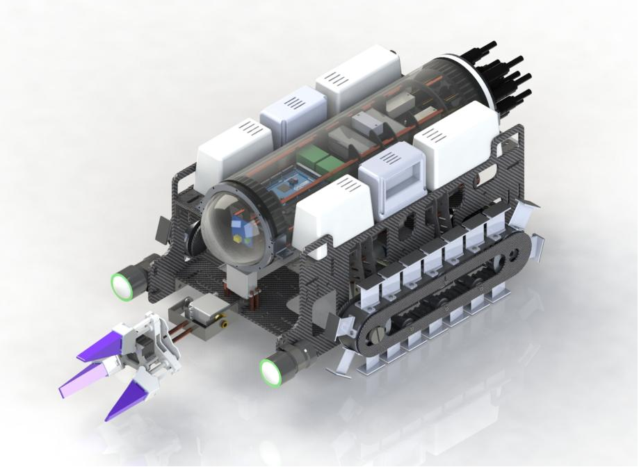 项目简介:本项目设计了一种基于"爬游共形"理念的灵活构型多模态水下采样机器人,具备爬动、游动双航行模态,具有操纵灵活、复杂海底地形适应性强、任务场景广泛等优点。采用“履带+足式”爬行结构,可适应多种工作环境与复杂地形;新概念“履-桨”一体式动力系统为机器人赋予了灵巧的操纵性能。此外,该机器人采用基于水下视觉的导引控制技术,能够根据作业任务进行自主导引与操控。本项目设计的机器人可用于执行复杂海底环境下的生物多样性观测、沉积物采样,以及复杂水域的水下探测和作业等任务,在探索和开发海底资源方面具可观的应用前景。
