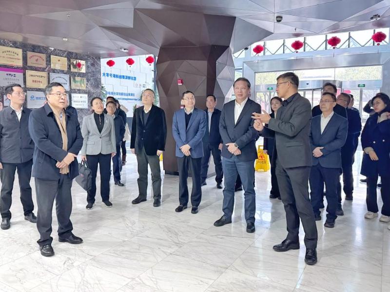 随后,范少军一行前往“大零号湾”科技创新策源功能区调研。在零号湾科技大楼,上海零号湾创业投资有限公司总经理张志刚汇报了“零号湾”从2015年起步至今的发展历程,不断构建完善与交大校园“零距离”的创新创业生态体系。