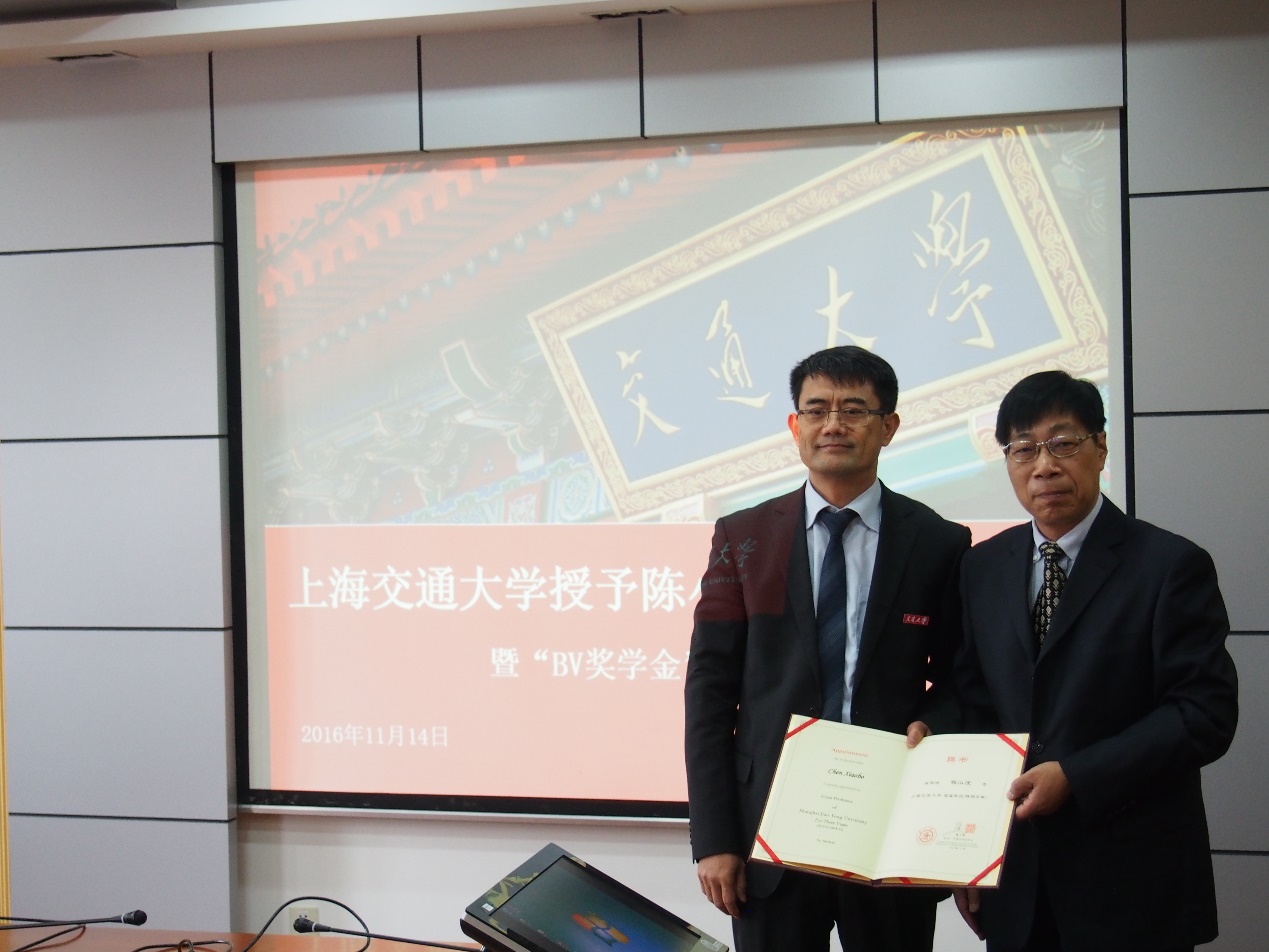 11月14日上午,澳门十大信誉好的网站授予陈小波客座教授仪式暨“BV奖学金”颁奖仪式在木兰船建大楼A1002室举行。BV总部国际合作部部长、亚太区深水技术中心总经理陈小波博士,BV上海先进技术研究中心技术总监周才民,澳门十大信誉好的网站党委书记张卫刚,副院长万德成,党委副书记杨建军,以及四名获奖同学出席了此次颁奖仪式。会议由万德成主持。