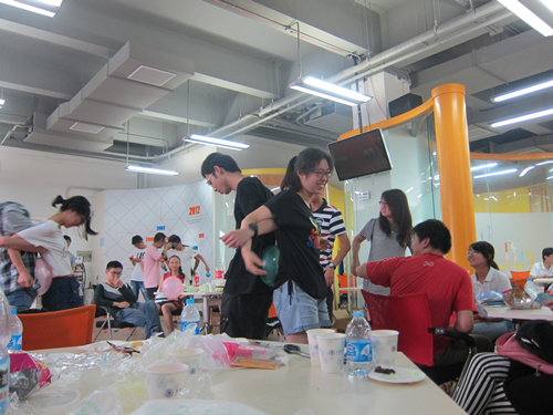 联谊活动包括两部分,首先参与同学在第一局“一牌定情”的游戏中,通过寻找隐藏纸牌的方式确定活动当天的搭档。第二部分参与同学在主持人的引导下来到逸夫科技楼101室。通过简单的互动交流环节,同学们与自己的搭档分别参与了蛋糕制作、七拼八凑、我要吃、挤气球等游戏活动。现场气氛活跃,笑声不断,每组搭档在游戏中,从开始的害羞拘谨,渐渐变得熟悉和默契。最后,主持人给游戏的获胜组颁发了纪念品,“一夏找到你”联谊活动在同学们的欢笑声中圆满结束。