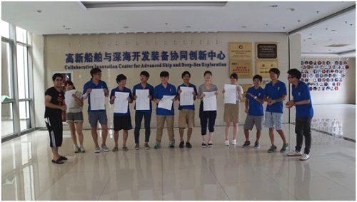 7月27日,暑期学校的同学们在志愿者的带领下参观了学校成果展示馆、赵朱木兰纪念馆,以及海洋工程国家重点实验室和多功能船模拖曳水池、空泡水洞等几个大型实验室。下午,同学们进行了UJTS体验式教育和培训,通过catch and escape、team show、无敌风火轮等小游戏,增进了同学们的感情,让地域、文化背景迥异的同学们迅速打成一片。