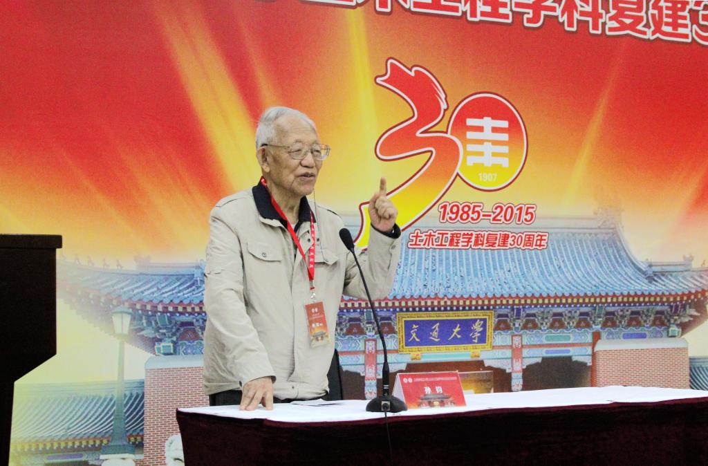 会议最后,与会人员一起听取了孙钧院士的精彩报告。作为交大的老校友,孙院士回顾了自己在交大求学时的岁月,他感恩母校把知识传授给了自己,感谢学长与老师的谆谆教诲。对于土木工程系今后的发展,孙钧院士提出了三点期待:首先,土木工程虽然是一个传统学科,但离不开新技术的更新改造。他希望在今后的学科发展当中,土木工程学科可以和其他学科交叉融合,适应学科发展新态势。第二,他希望教师在教学过程中将理论与实践相结合,引导学生关心国内外发展的前沿动态,运用理论研究解决实际问题。最后,孙钧院士对高校的教师提出了自己殷切的期望,希望老师能够将自己的科研、学习成果运用到教学中去,给学生带去更加新颖的知识内容。孙钧院士的报告引发在场师生、校友的强烈共鸣,报告结束后,掌声经久不息,交大土木人将继承老一辈土木人的奋斗、奉献精神,将母校土木工程学科发展推向新的高峰。