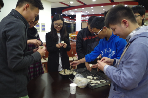 晚会的最后大家迎来了呼声最高的包饺子环节。所有现场人员都迫不及待地冲洗干净自己的双手,加入了包饺子大军。不一会儿,各种形状的饺子就呈现在我们面前。有“元宝形”的,“月牙形”的,“扭扭捏捏形”的和“四不像形”的,只有你想不到的,没有大家包不出的。最后在大家愉快地享受自己劳动成果的同时,联欢晚会也接近了尾声。