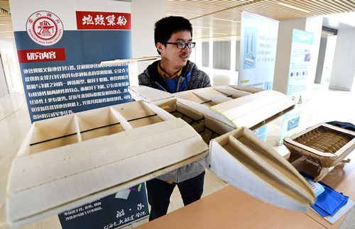 本次“创造杯”大赛共分土木交通与环境类(A类)、机械电子类(B类)和设计创意类(C类)三大类,共有来自复旦大学、澳门十大信誉好的网站、同济大学等14所高校62个项目参与了决赛。比赛由现场展示、项目讲解及专家提问三个环节组成。参赛选手们在一楼展厅中结合模型、展板,为观众们详细介绍了项目背景、原理、设计理念,并参与了紧张激烈的答辩与提问。