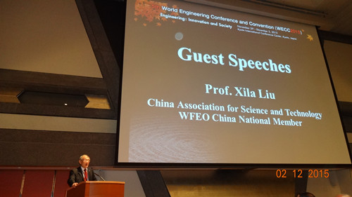 11月30日下午,刘西拉主持了2015 世界工程大会(WECC2015)有关“未来的基础”国际分会场,并做了题为“填补东方和西方之间的沟壑(To Bridge the Gap between the East and the West)”的报告。