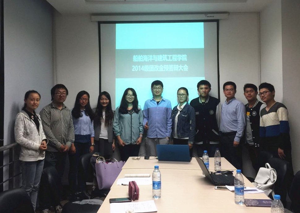 5月22日晚,由船建学院团委学生会组织部举办的2014级团改金答辩会议在新图书馆E216举行,船建学院学生工作办公室教师杲光伟,学生团委副书记薛钰景、姜柳应邀担任评委。