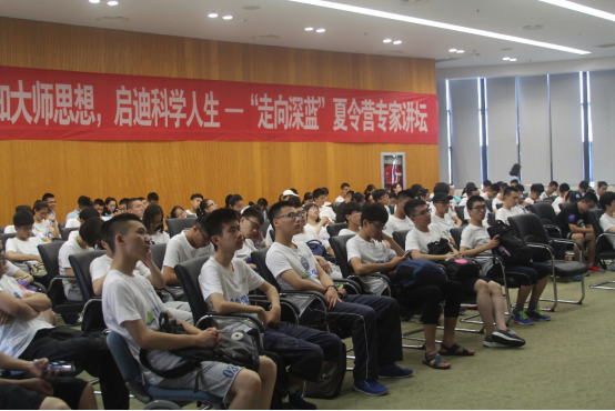 7月12日,2016 “走向深蓝”夏令营开营仪式在闵行校区木兰船建大楼二楼报告厅隆重举行,上海交大杰出校友、上海市船舶与海洋工程学会名誉理事长、中船重工708所原所长梁启康,上海市船舶与海洋工程学会秘书长赵敏,上海市船舶与海洋工程学会吴贻欣,徐汇区科协罗莲芳、曹丹丹,上海交大澳门十大信誉好的网站副院长夏利娟、党委副书记杨建军、院长助理朱惠红、海洋工程科普基地负责人王磊以及全体夏令营成员,大学生志愿者参加了开营仪式。