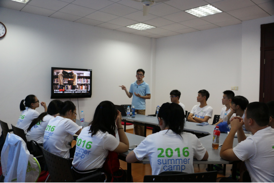 7月12日下午,夏令营10位班主任作为交大学长, 与营员们面对面座谈,为营员们讲述他们的大学生活。除了专业课,需不需要读点课外书、培养其它兴趣?2班班主任张显向大家讲述大学生活的应当“为”与“不为”,他说打好专业基础、学习实用技能、形成独立人格、收获同窗之情是走向成功的四拼图。通过与各位交大学长学姐的交流,同学们对大学的生活、学习、专业选择有了更深入的了解,激发了他们努力学习的信念。