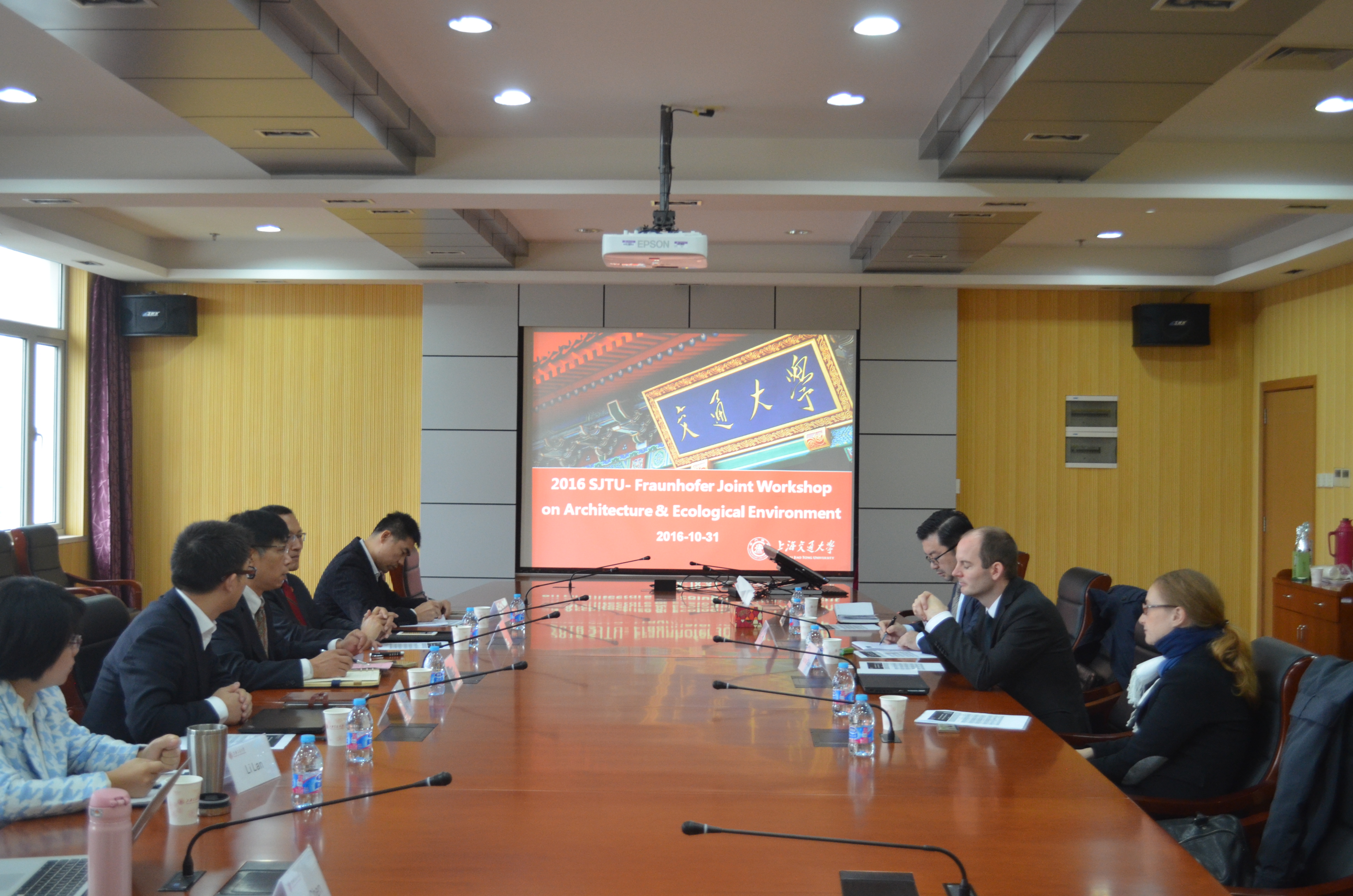 “上海交大-弗劳恩霍夫研究中心”战略合作协议成功签署后,船建学院、农生学院与弗劳恩霍夫应用研究促进协会展开了SJTU-Fraunhofer建筑与生态环境研讨会。船建学院教师杨健、邓雪原、兰丽,农生学院副院长车生泉,教师于冰沁、陈丹以及弗劳恩霍夫应用研究促进协会副所长Gunnar Gruen、李宏博士等参加研讨。会议由张卫刚主持。中德双方学者就研究方向以及合作模式展开了更加细化的讨论,为生态城市建设、建筑环境改善献计献策,为研究中心的筹建以及研究合作打下了基础。