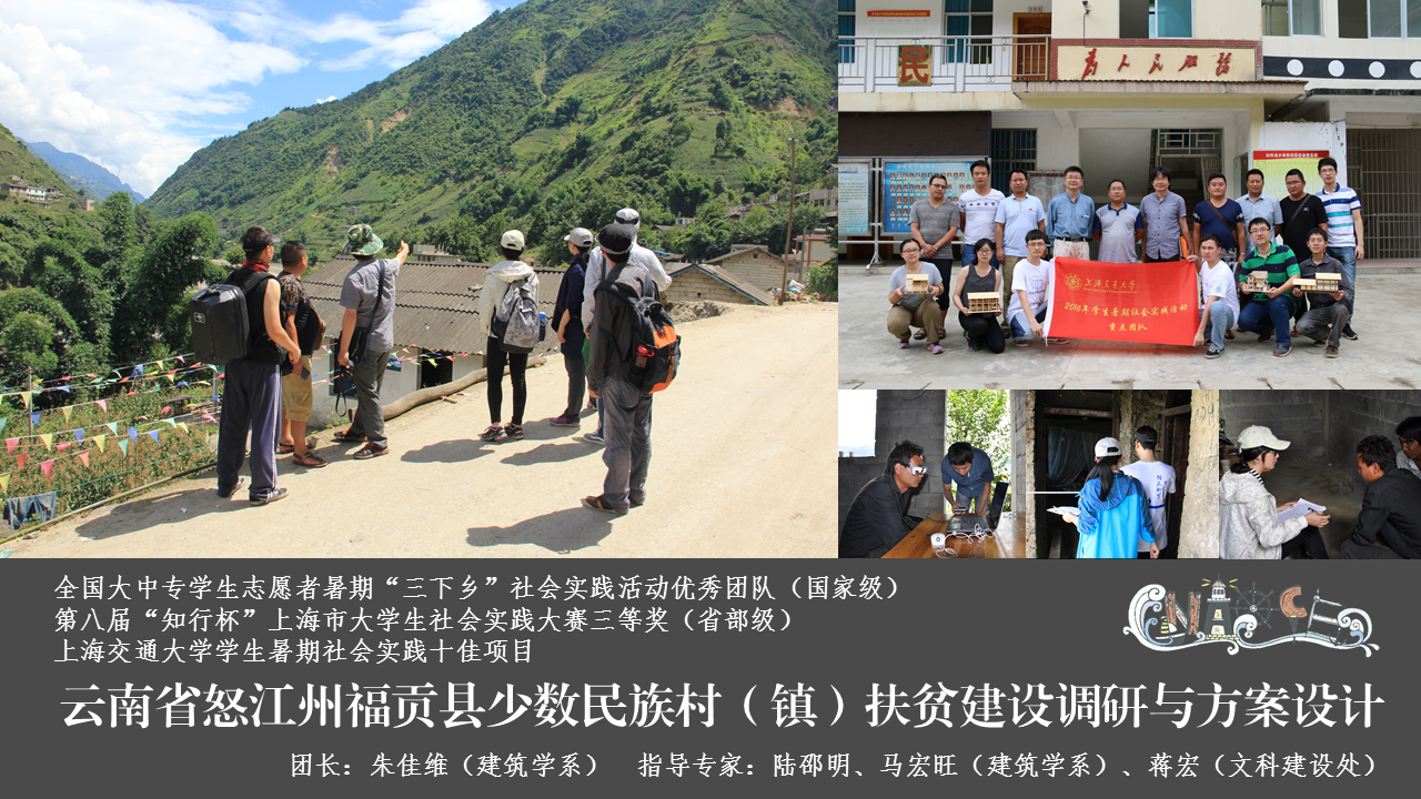 在暑期实践活动中,实践团队坚持实践与社会热点相结合。建筑学系陆邵明、土木工程系马宏旺,文科建设处蒋宏老师指导的团队赴云南省怒江州福贡县少数民族村(镇)扶贫建设调研与方案设计社会实践项目深入到架科底乡,响应党中央全面实现小康社会,精准扶贫有效脱贫,为架科底乡下一步的合理推进易地扶贫建设提供了可操作的技术指导,并为传统民族文化的传承及其社会产业做出了科学规划。国际航运系胡昊教授团队针对16年3月以来上海实施的道路交通违法大整治行动的实施效果进行调查,项目依托专业知识,从挖掘交通违法成因的角度对症下药,并参考国内外城市交通管理的政策方法,提出相关建议,巩固现有整治成果,从而降低行政成本,实现“标本兼治”,建立交通整治的长效管控机制。