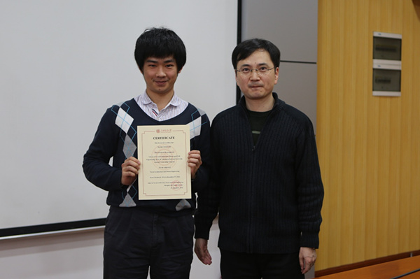 出席Workshop的师生们对四名交流生的发表内容进行了热烈讨论,参会的教师们还对交流生今后的研究方向进行了指点。四名交流生表示,通过这次交流,他们不仅在科研上得到了启迪和长进,也收获了与船建学院研究生的友情,增进了对中国文化的理解。报告会结束后,项目负责人张新曙为四名日本交流生颁发了结业证书并表示祝贺。