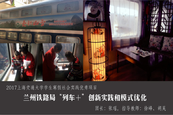 寒假社会实践以“行万里路,知中国情”为主题,船建学院学生结合专业特点,关注社会民生发展。由徐峰、胡昊老师指导的“兰州铁路局‘列车+’创新实践和模式优化”社会实践深入甘肃省兰州市,对品牌列车的示范案例“麦积山号”、“兰州旅游号”进行了实地调研。在一个月的时间中,团队通过对列车上乘客的问卷调查和对列车员及客运段负责人专访,分析“列车+”创新模式的优势与不足,并提出相应对策建议,以期优化“列车+”模式,推动客运转型升级。