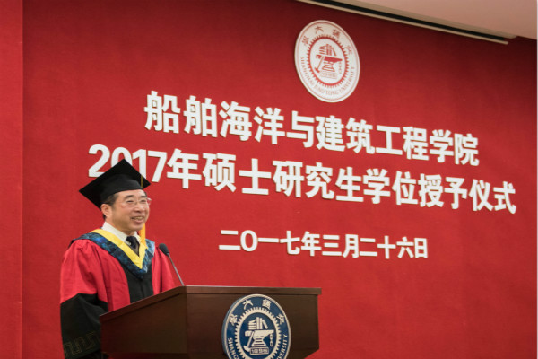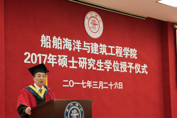 3月26日下午,澳门十大信誉好的网站2017届硕士毕业生学位授予仪式在木兰船建大楼A200报告厅举行。船建学院党委书记张卫刚,院长杨建民,学位委员会主席赵金城,党委副书记杨建军,各系系主任、专业教师,学工办全体思政老师,2017届硕士毕业生及部分学生家长出席了此次学位授予仪式。