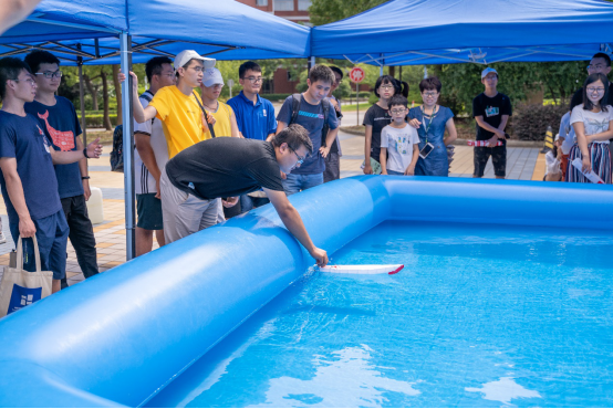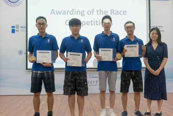 同时,为了让学员们互相增进了解,将理论融入实践,暑期学校首次举办了船模竞速赛。学员们自行组队,每组在一周内利用课余时间分别制作一艘限重船和一艘无限制船,并于7月31日下午举行了竞速比赛,邀请了浙江大学白勇教授、上海交大船建学院余龙、冯正平、顾解忡三位专家老师,以及全国海洋航行器大赛获奖学生于特担任评委。每条船的船型设计满分为20分,竞速成绩满分为30分,根据规则评选出了一等奖团队(Outstanding Winners )2支,二等奖团队(Meritorious Winners)3支和三等奖(Honorable Mention)团队5支。