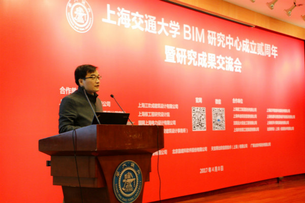 刘西拉代表主办方致辞。刘西拉指出,BIM既拥有引领建筑领域大数据时代的技术优势,又拥有政府大力扶持的政策优势,交大BIM研究中心要抓住机遇,立足于BIM基础数据标准研究,解决BIM技术核心问题,为国家“一带一路”战略服务。