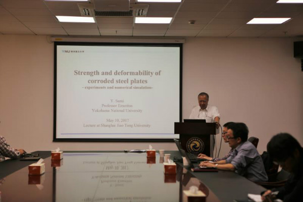 5月10日,日本横滨国立大学荣誉退休教授Yoichi Sumi教授应澳门十大信誉好的网站马宁教授、王德禹教授的邀请,来我院做了题为“Strength and deformability of corroded steel plates - experiments and numerical simulation (腐蚀钢板的强度和变形-试验与数值仿真研究)”的学术专题讲座,并与参加讲座的师生进行了学术交流和研讨。