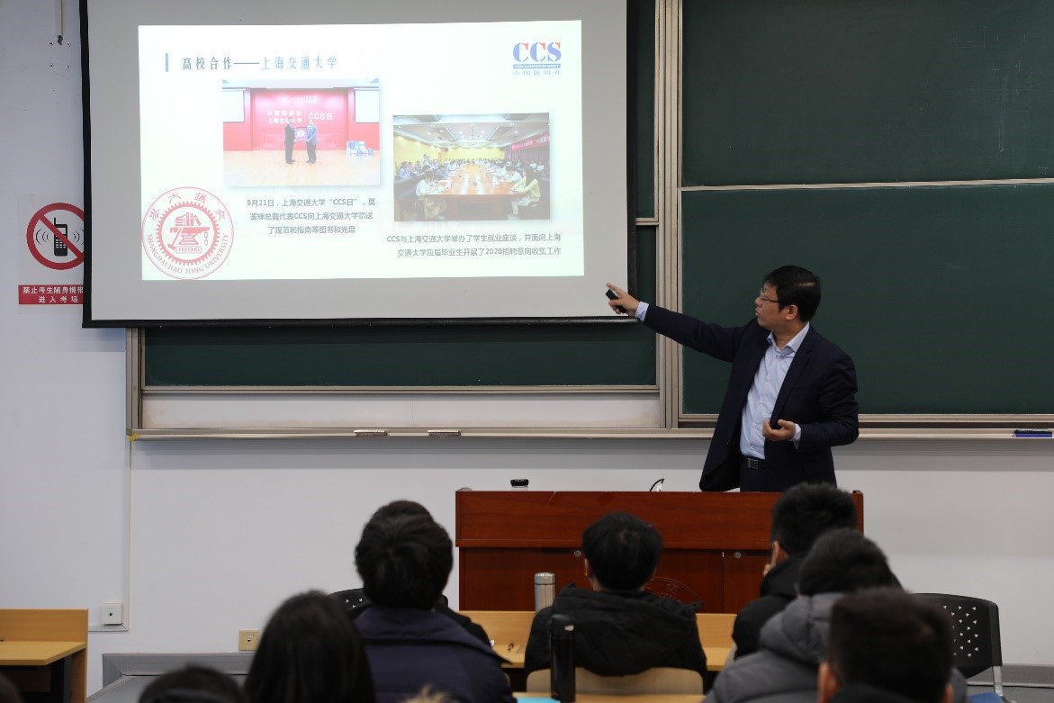 12月4日上午,中国船级社上海分社副总经理庄重副应船海系教师余龙邀请,在陈瑞球111给我院本科生上了一堂精彩的专题课。